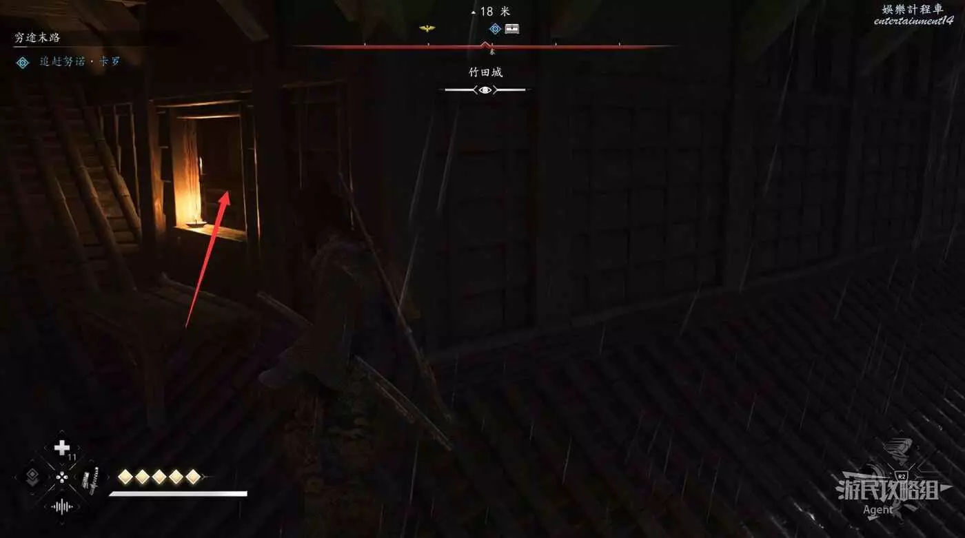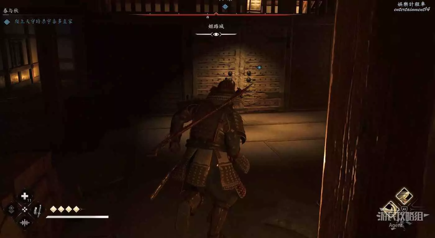 找樓梯上到姬路城高樓的樓頂,刺殺直家。中途有個門彌助可以直接撞開,奈緒江則需要從附近的地板暗道潛入。