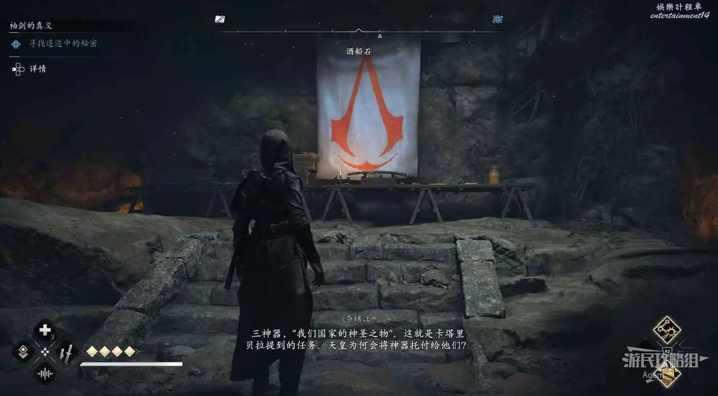 回憶劇情後,入口打開,來到地下見到刺客標誌。