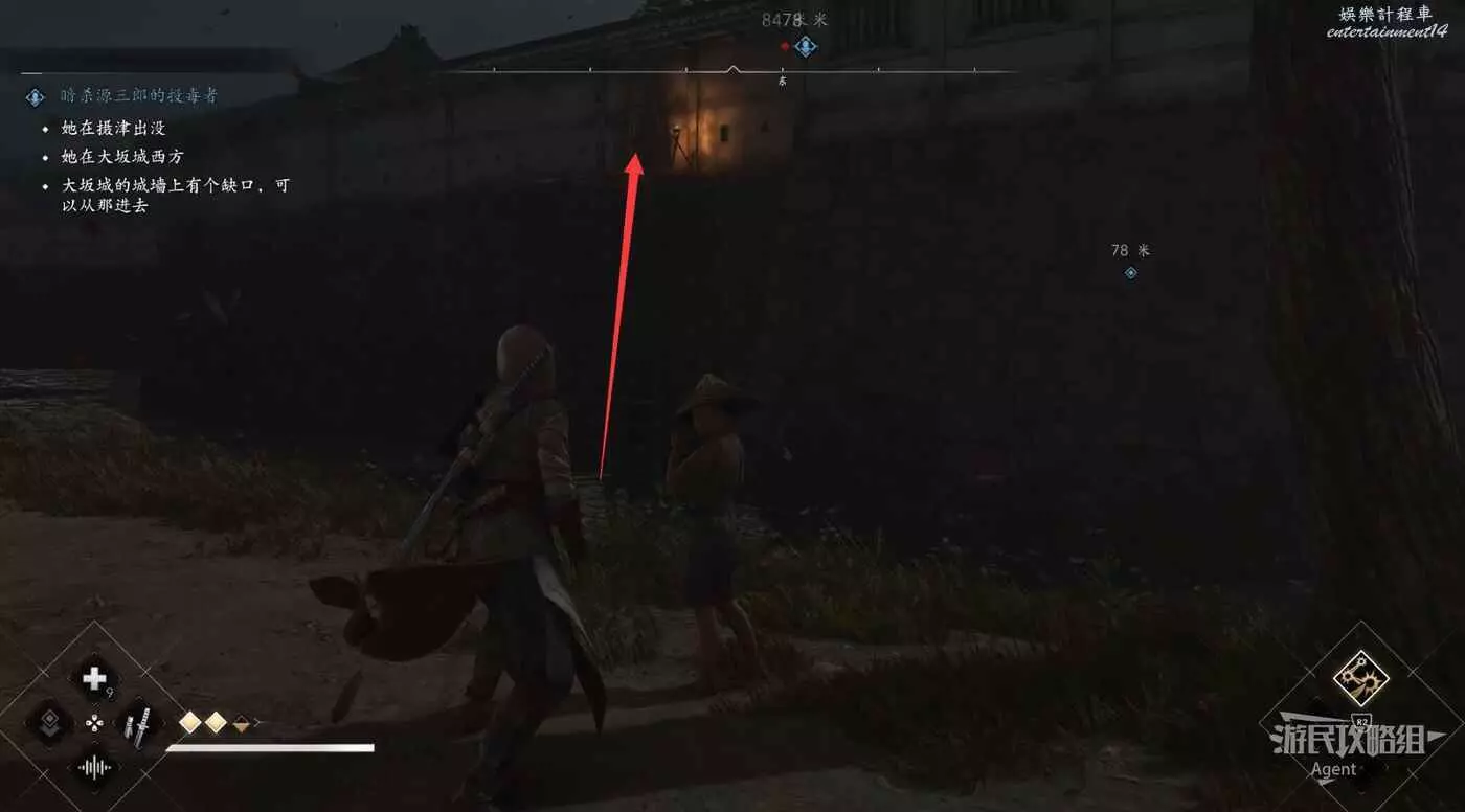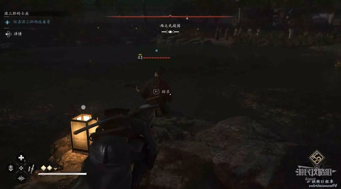 到大阪西面跟隨小孩的指引,潛入西之丸庭園刺殺投毒者。