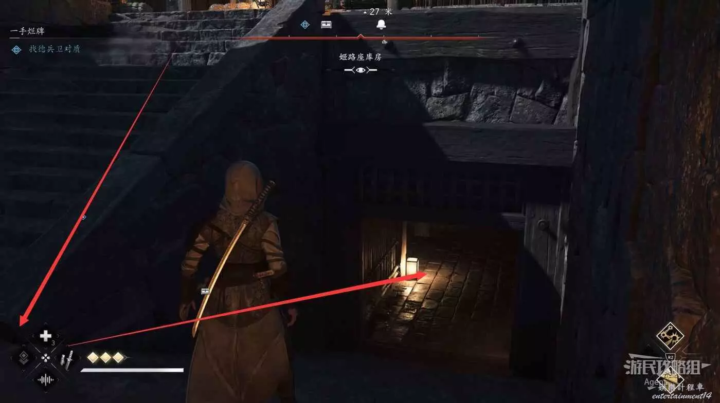 劇情後努諾·卡羅躲到了樓上,進入建築然後找樓梯上樓。