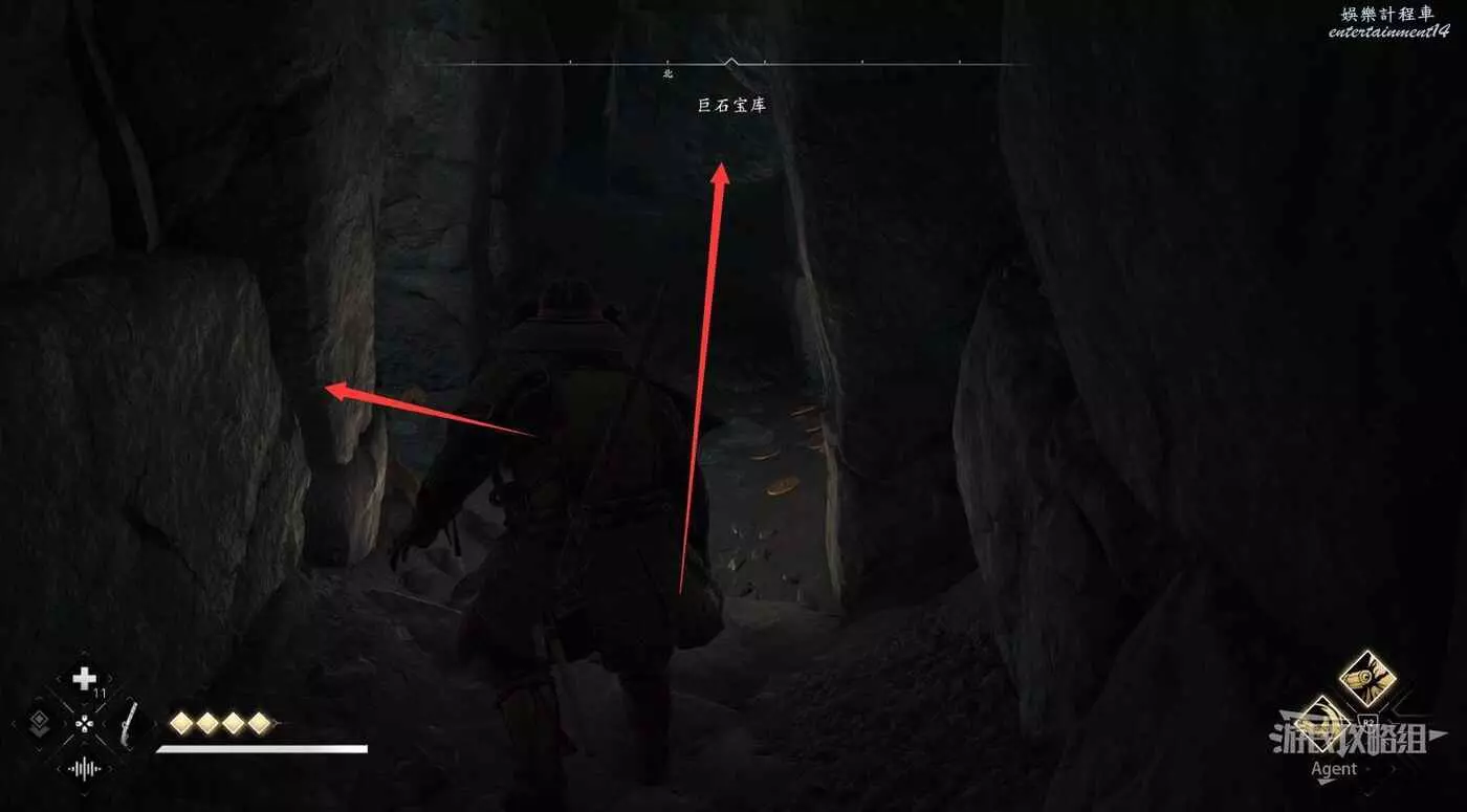 繼續往前走,先鑽進右邊的洞拿個小寶箱,然後再往前走鑽過狹縫。