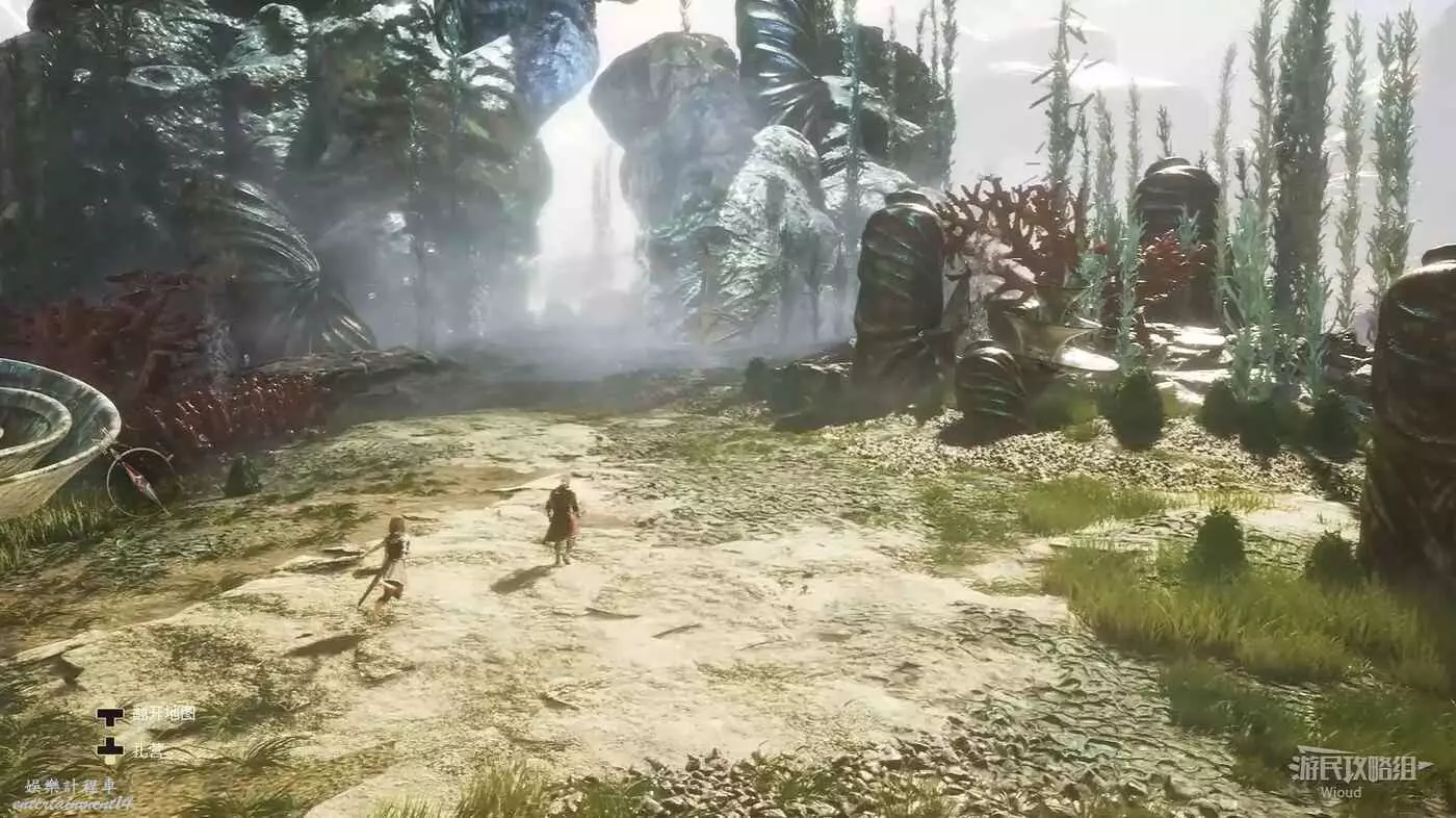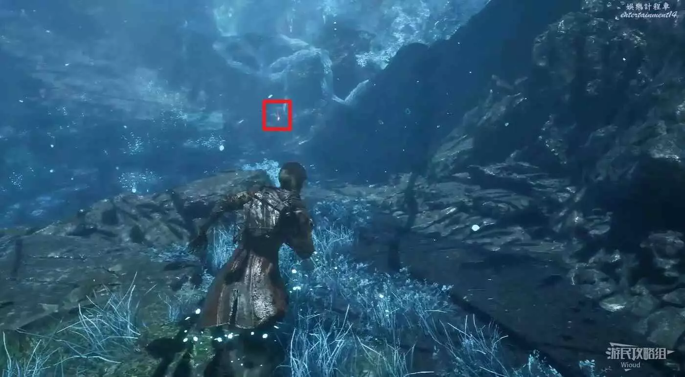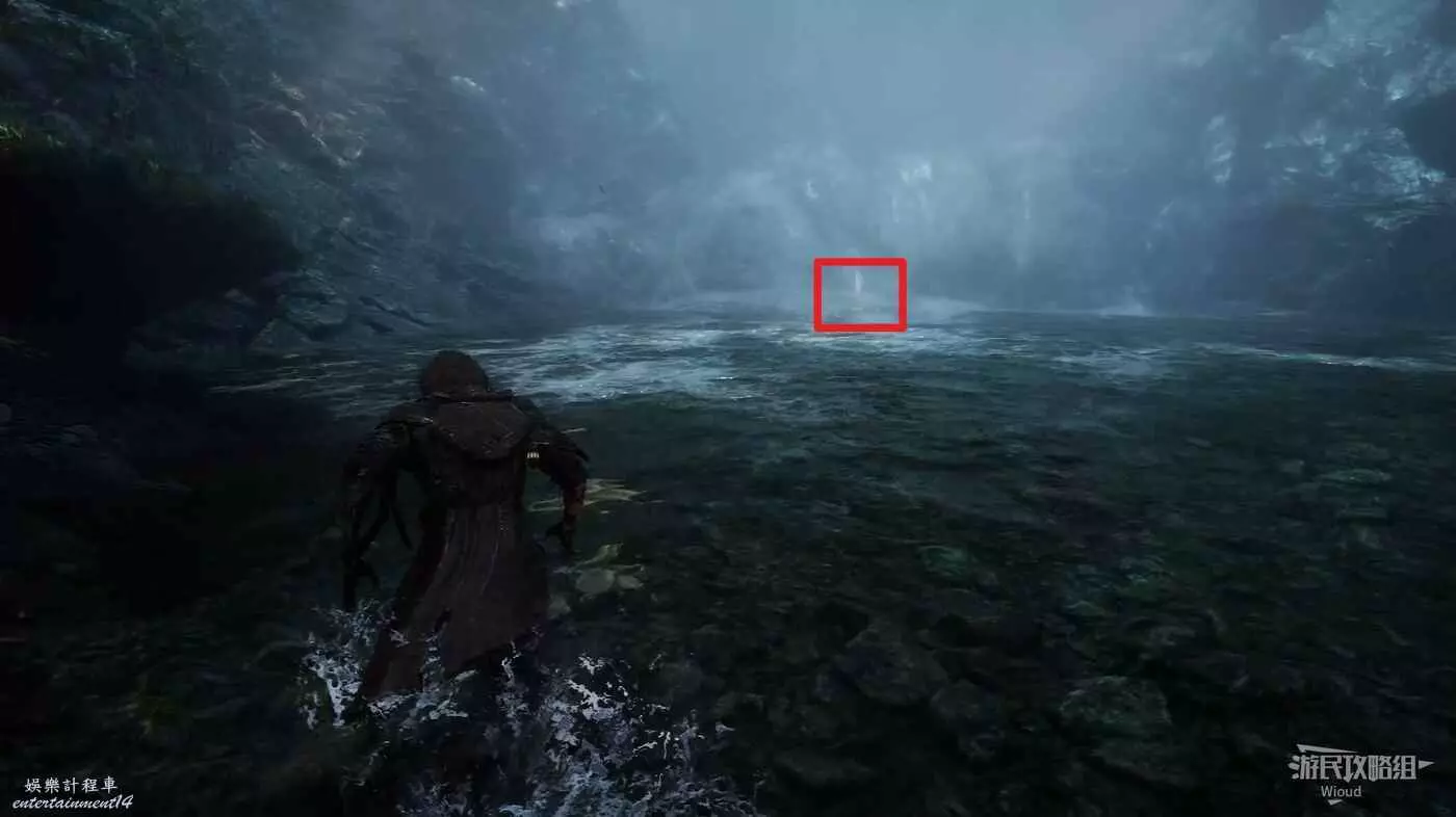 無視這隻經怪,啟動左側的篝火,沿旁邊的藍色通道走到裡面的開闊區域。