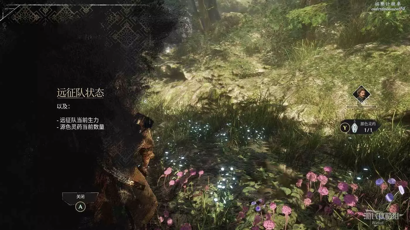 然後沿路往前走,觸發教學打開遠端隊狀態,長按對應按鍵使用【源色靈藥】可以恢復全體角色的血量。