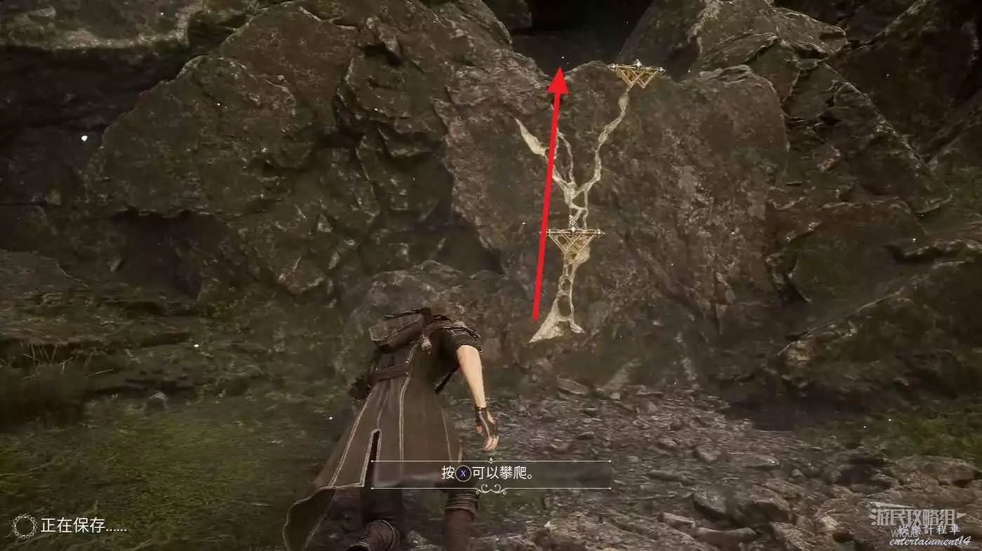 走到後面懸崖,通過鉤爪跳到高處往洞穴裡面走,觸發劇情碰到第一個隊友呂涅,後續被迫開啟易一場戰鬥。