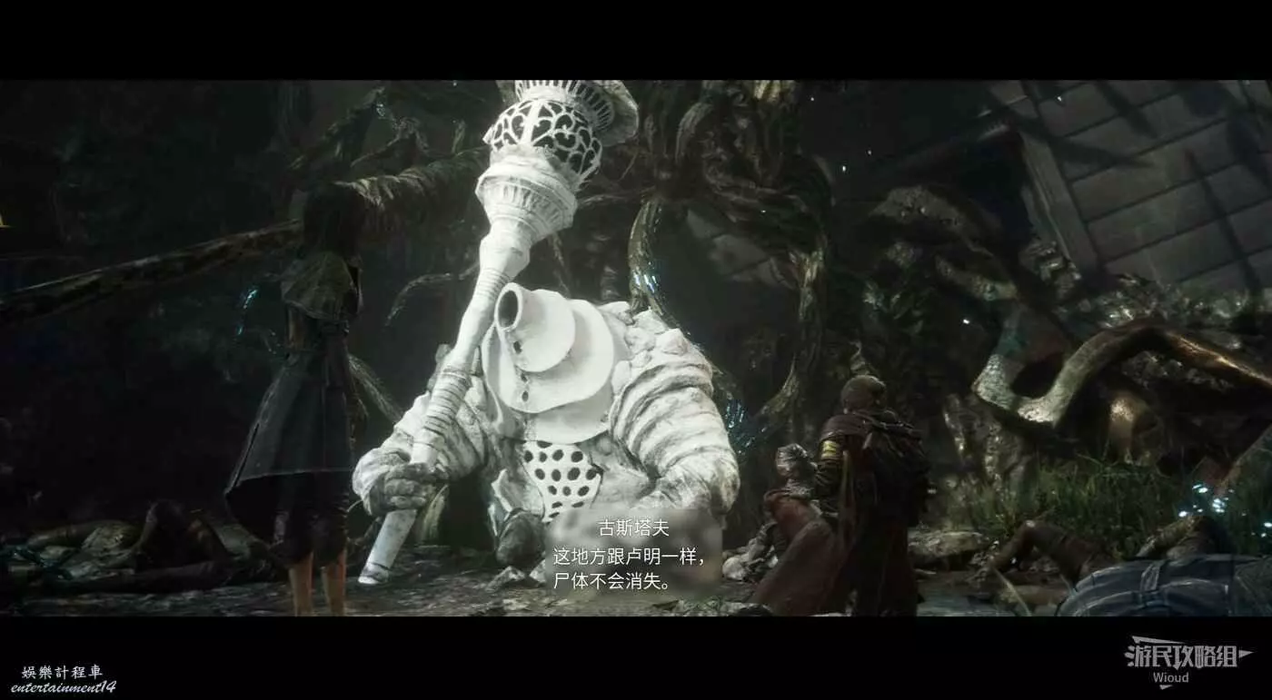 回到剛才有收集品的上坡位置,上去啟動遠征隊旗幟【藍樹】,在此處將加點或裝備都弄好,往前走一段強制載入劇情開始和關底BOSS【主教】的戰鬥。