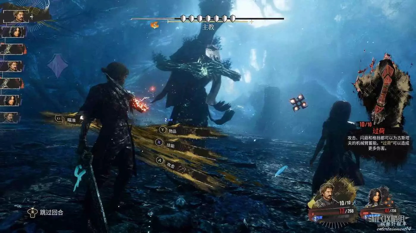我們需要控制小怪的血量,讓裝備此符紋的角色擊敗所有小怪獲得六個行動點,主教血量只剩三分之一時會再次彈出七層護盾,直接用剛才的技能點通過射擊的方式一回合全部清除掉。