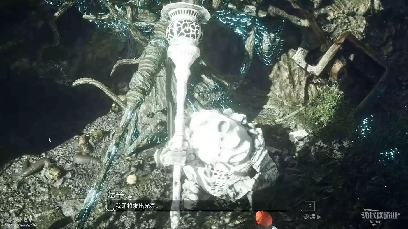 劇情結束繼續跟這個白色經怪交談,得知它要光,我們此時還不知道它說的光是什麼。