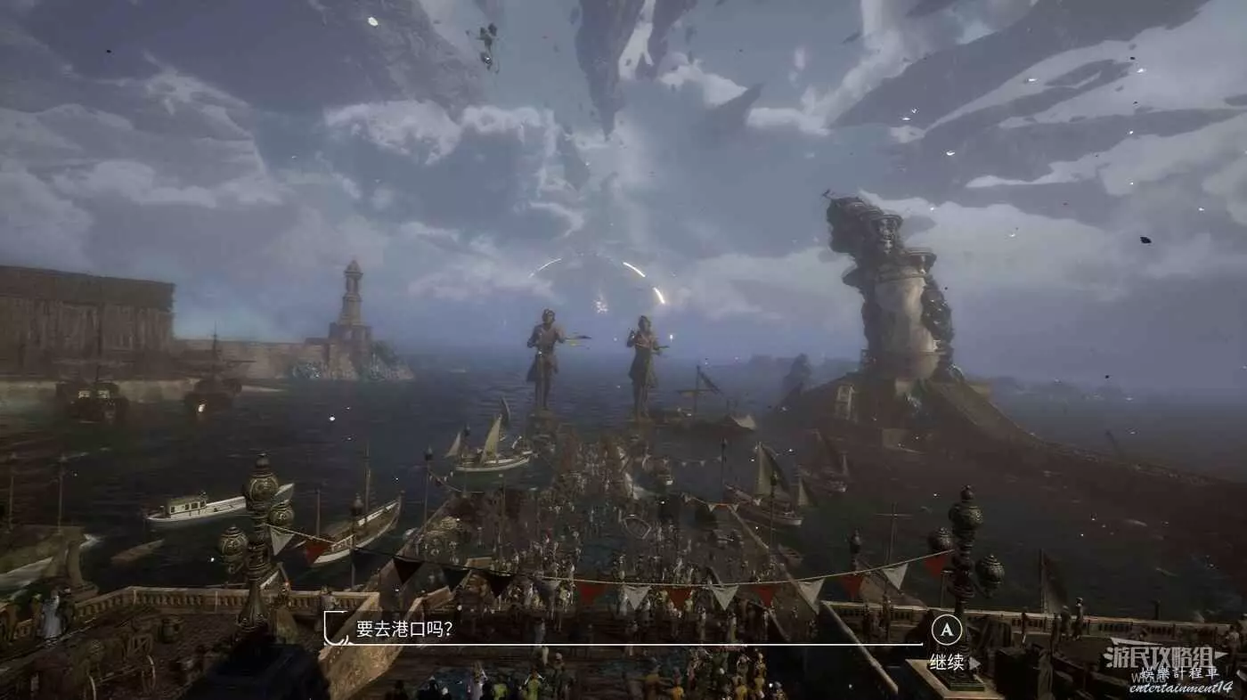 位於港口右側附近,與其戰鬥可以解鎖一個成就,中間往前走進入選擇進入港口觸發劇情,進入下一個場景。