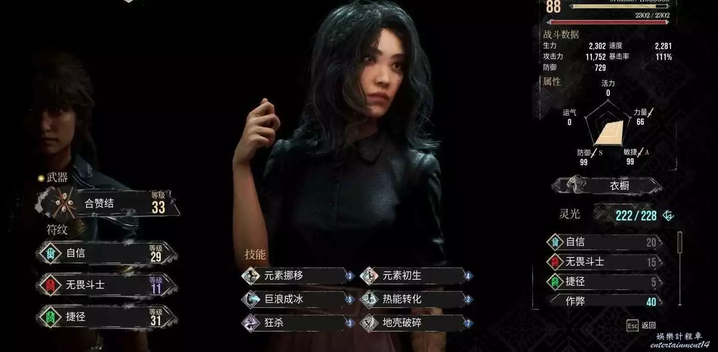 接下來是瑪埃爾,瑪埃爾可以用技能切換姿態,分別是高手姿態(加兩倍傷害),攻擊姿態(傷害+50%,受傷+50%),防守姿態(受傷-50%且格擋/閃避給行動點),瑪埃爾是全遊戲最強輸出手,不過我的玩法是讓她作為肉盾,她也是輪椅玩法的核心,順帶一提本打法的瑪埃爾放棄了輸出,所以屬性優先點防禦和敏捷。前期技能點大步流星,提高警惕,神盾化身(核心),再去拿中強音,武器使用逆刃刺(防守姿態下獲得行動點共用給隊友),符文使用振奮傷痛、加生存能力的符文比如自信、再來一次等,符文主要帶加防禦與生力的。開局瑪埃爾直接使用神盾化身,然後進行中強音、神盾化身迴圈,你就會發現敵人的單體攻擊瑪埃爾會主動幫隊友扛,同時你格擋成功會給全隊加行動點,格擋不到的話在防守姿態和防禦符文加持下掉血也很少,哪怕敵人使用群體攻擊,瑪埃爾也可以一直賴著不死然後慢慢復活隊友。後期的話,我也是繼續玩的這套,只給瑪埃爾的武器升到了二十級,給瑪埃爾用符文堆到了萬血四千防,符文帶了攻守兼備和又快又強,瑪埃爾進戰鬥先使用提高警惕給全隊上堅殼強力迅捷,然後用神盾化身幫隊友扛傷,敵人打她就掉幾十一百的血,然後由於振奮傷痛(挨打回技能點)加逆刃刺(行動點共用),瑪埃爾也是全隊行動點發動機。不過感覺後期瑪埃爾可能還是作為大C更有價值。