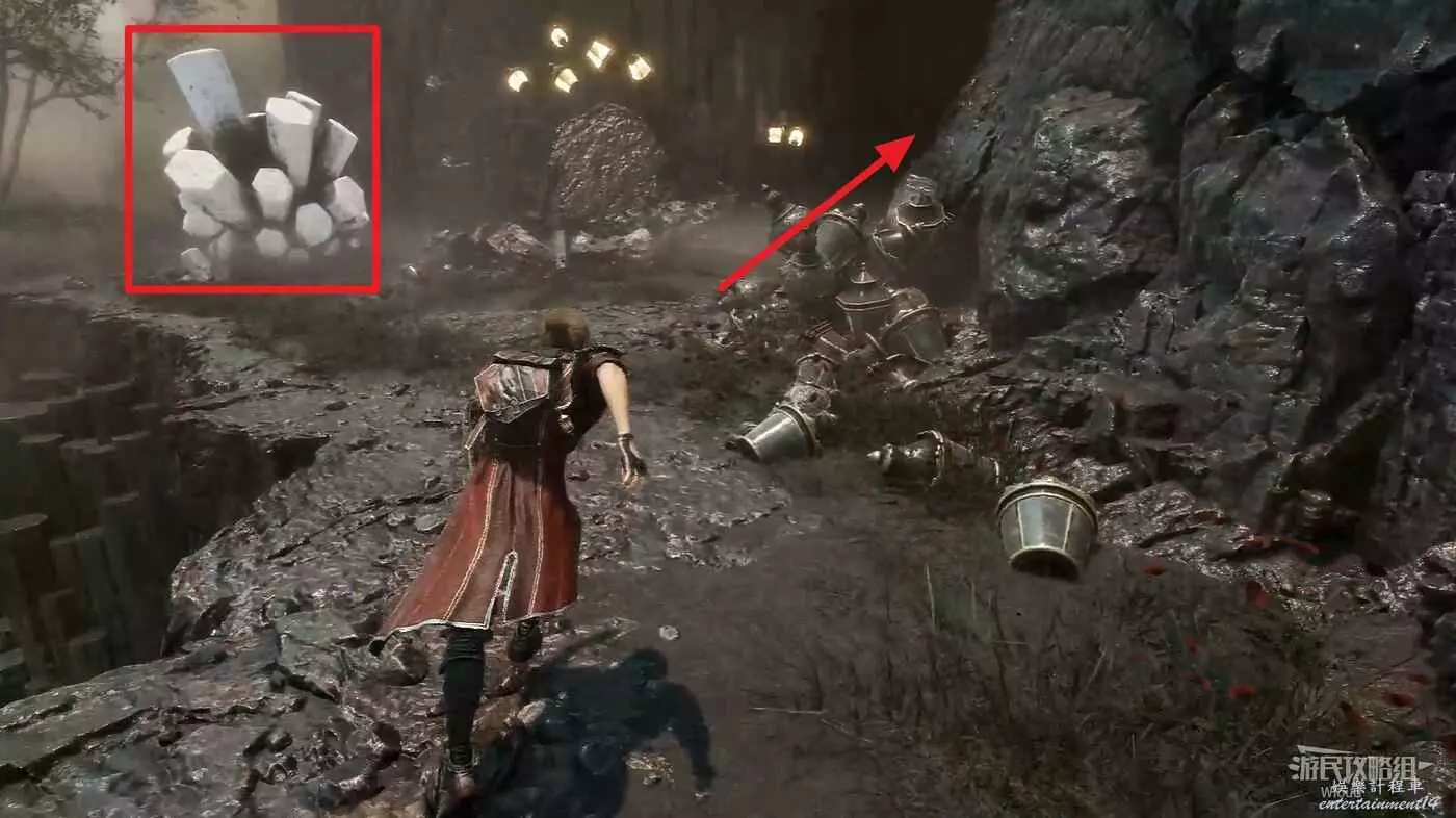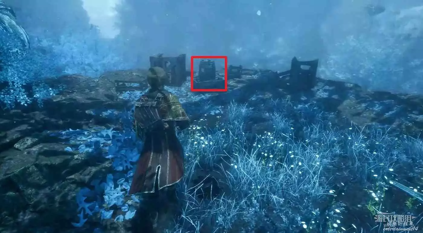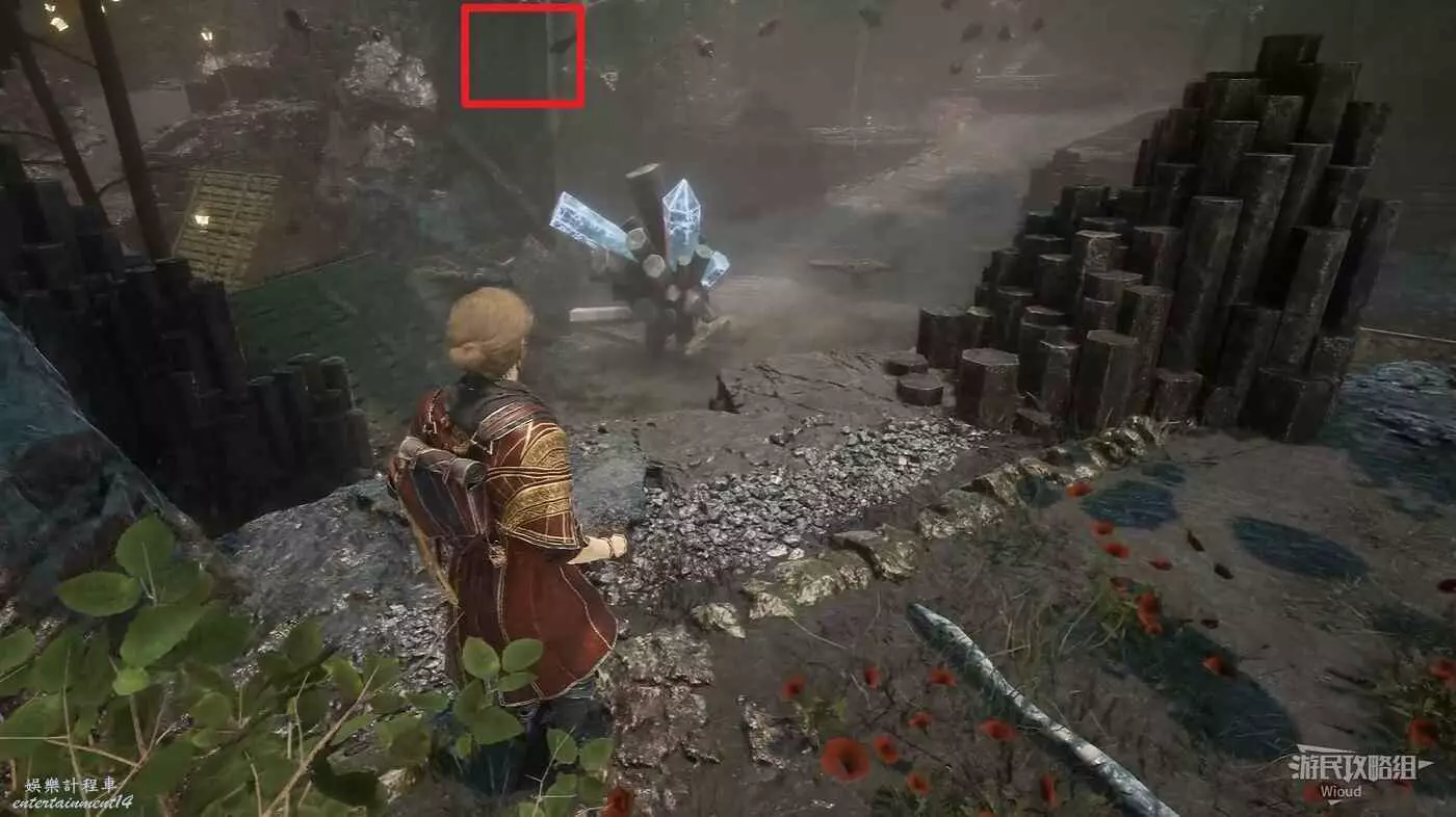 繪籠位置沿坡往下走,注意右側有個凹口,裡面找到第二個能量塊。
