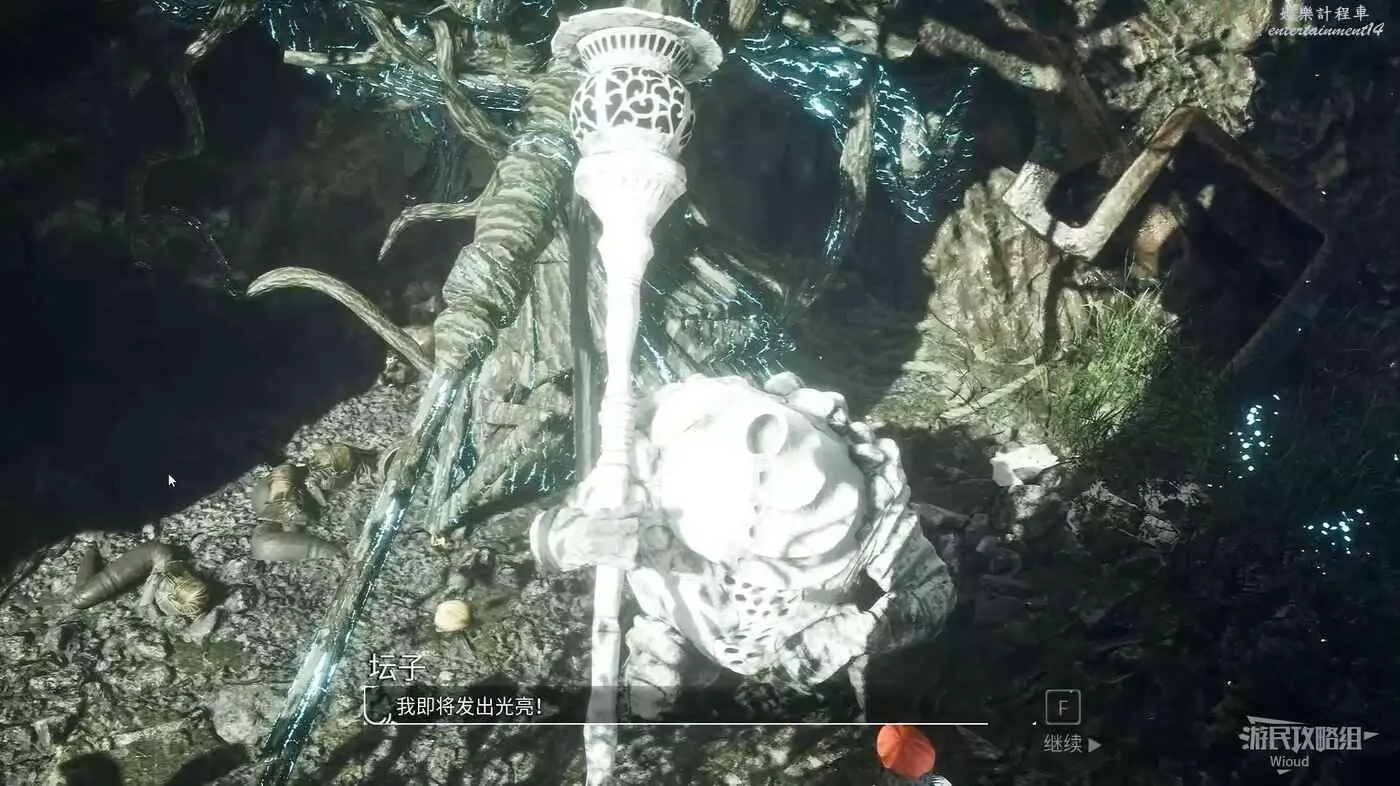 劇情結束繼續跟這個白色經怪交談,得知它要光,我們此時還不知道它說的光是什麼。
