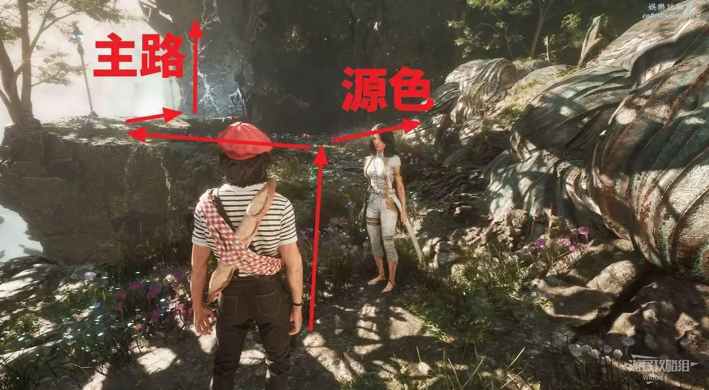 前方左側可拿【靈光色】,右側上坡可拿源色。