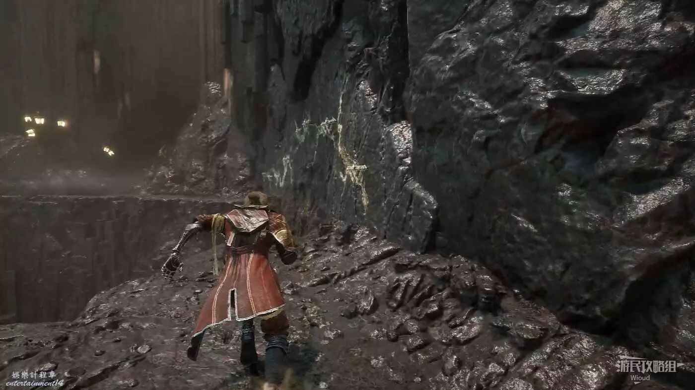 這個區域右側有個紅色怪物,將其擊敗可獲得符紋【以死引燃】,下圖怪物位置右側軌道處有個往下走的繩索。