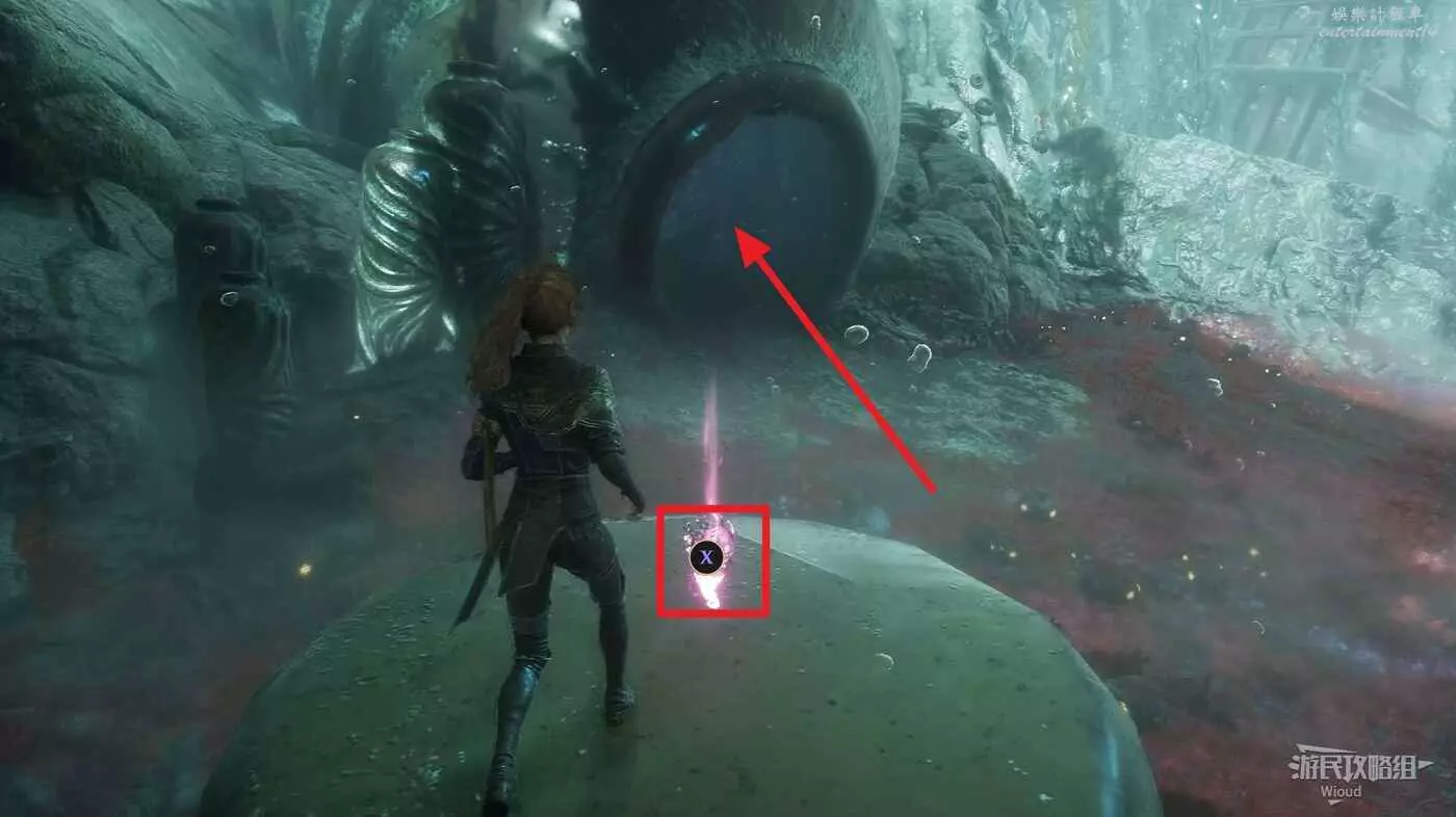 回到上層,正前方散發紅光的拱門內有源色可拿,拱門右側一個過道,進入這個過道走到頭,左側可以發現個狗洞。