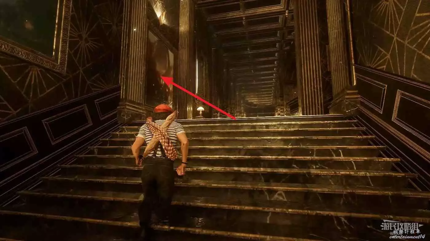 剛爬完樓梯的位置左側有一副畫,這個畫可以跳進去,裡面房間可以撿到一個【生命之形】。