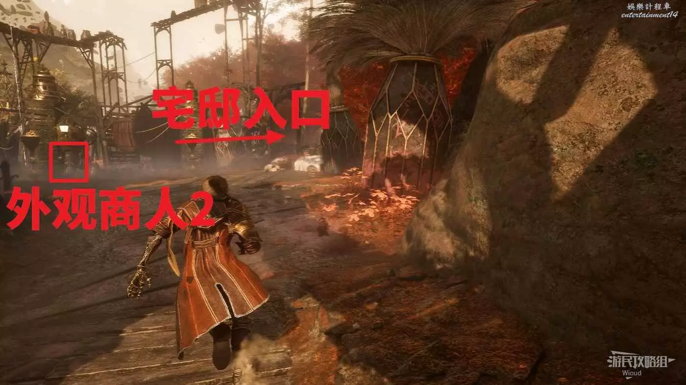 走到一個開闊區域,前方可以找到一個外觀商人,右側再次找到一個宅邸的入口。