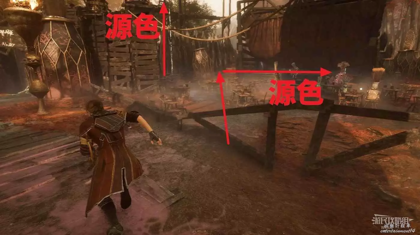 回到進入宅邸前的開闊區域,往左走,左側區域有個戲台,戲台後面有個小過道,裡面有源色可以拿。
