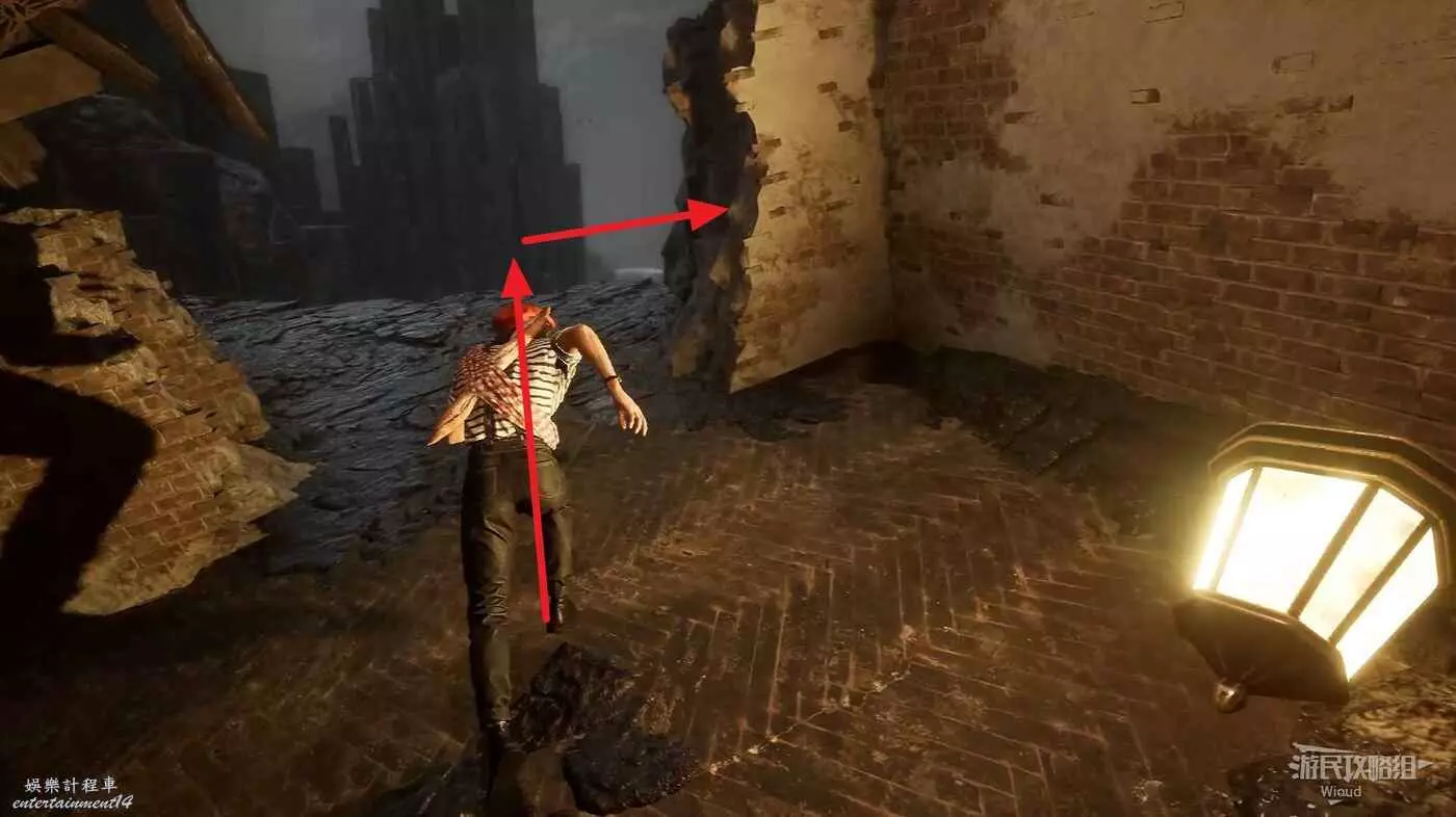 頂層房間通過缺口出去立即右拐,沿著牆上的梯子爬下去可撿到道具【複生亮色碎片】。