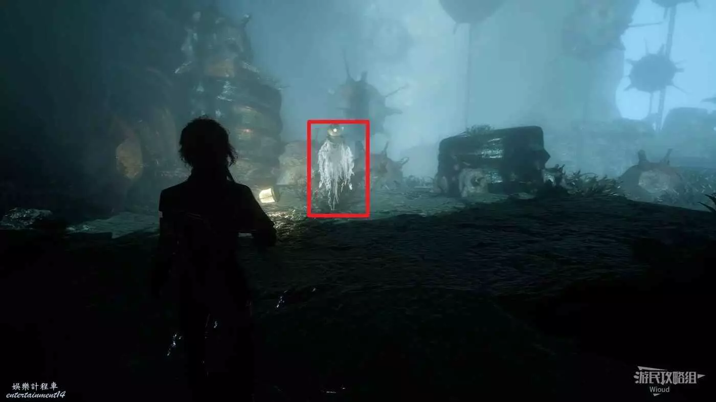 與對面的經怪對話,千萬不要選擇攻擊它!對話結束後往右走。
