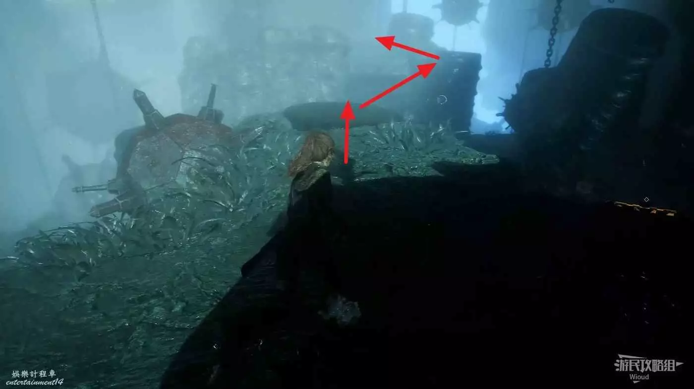 平台處可以看到右前方有個發光的道具點,繼續沿著途中的路徑跳到對面,拾取道具【完好的水雷】。