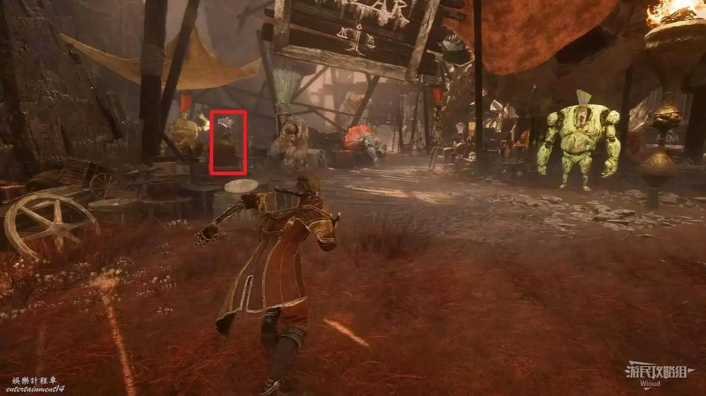 這個接任務的刷頭精右側有個往裡走的過道,走到盡頭遇到個搶劫的刷頭精,與其戰鬥並獲得勝利解鎖商店二,此處可購買符紋【療愈標記】和武器【五指刺】。