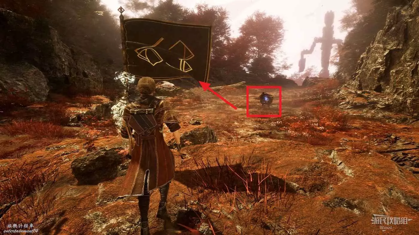 來到古代聖所的入口,地圖起始點往前走啟動第一個遠征隊旗幟,前方可以看到一個名為【滾球】的經怪,我們一旦靠近,它會立刻逃跑。