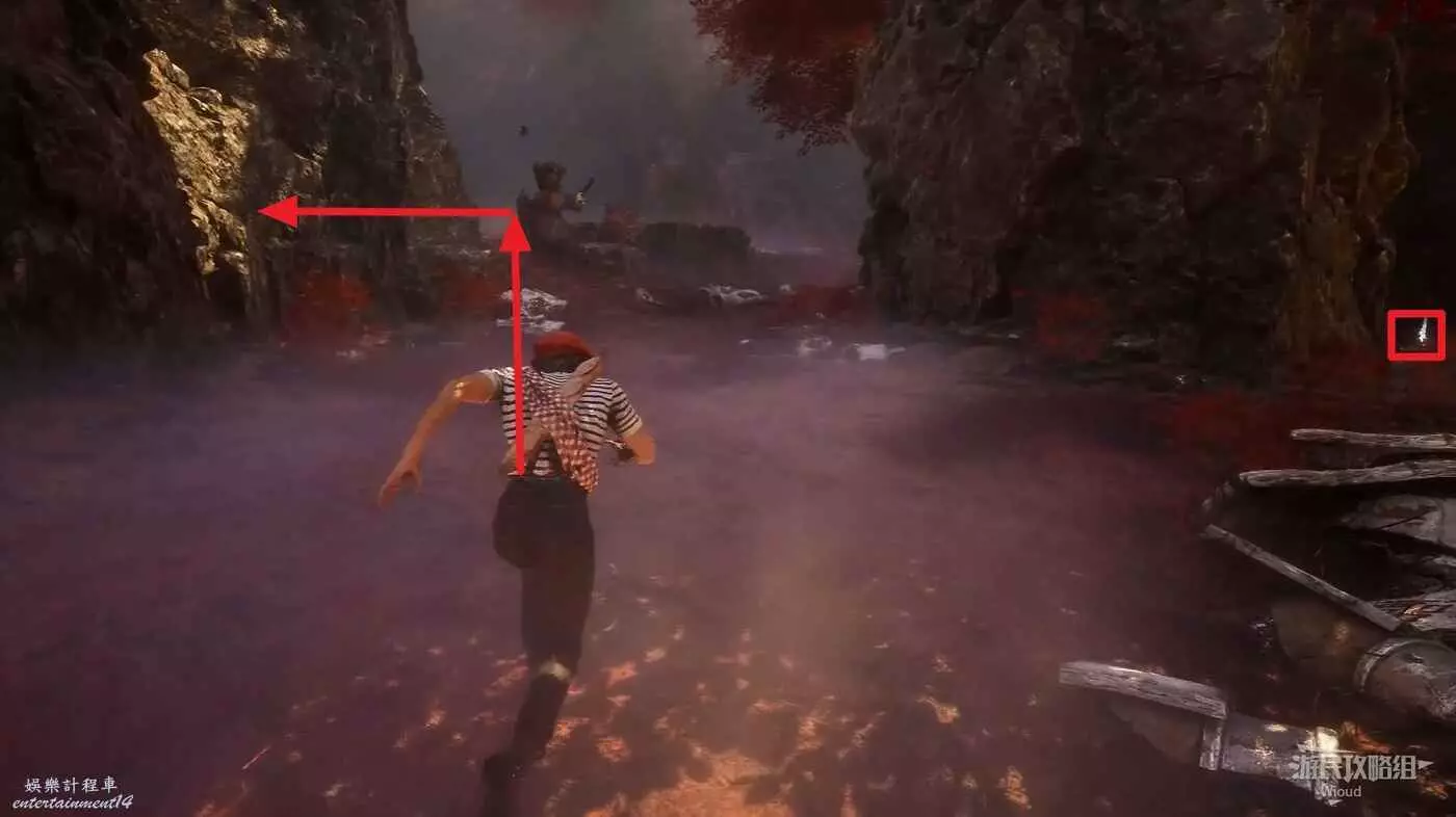 前面不遠處有個敵人,右邊有個小道,裡面可以拿一些源色。