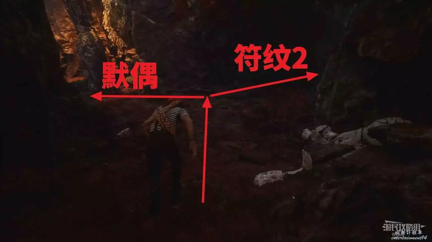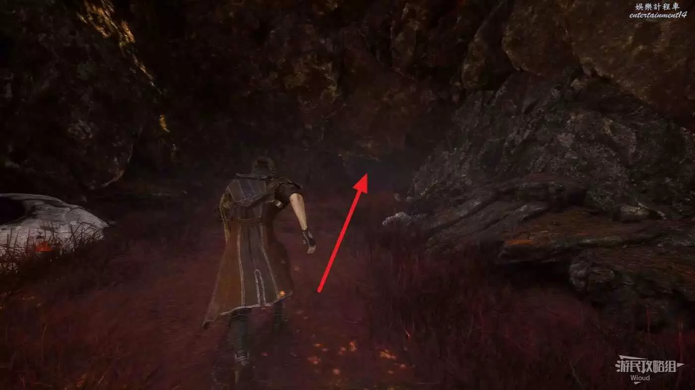 經過一個倒塌的石柱後立刻右拐,鑽前面狗洞。