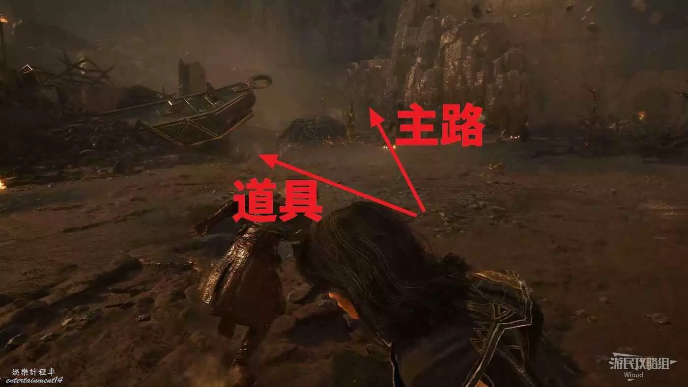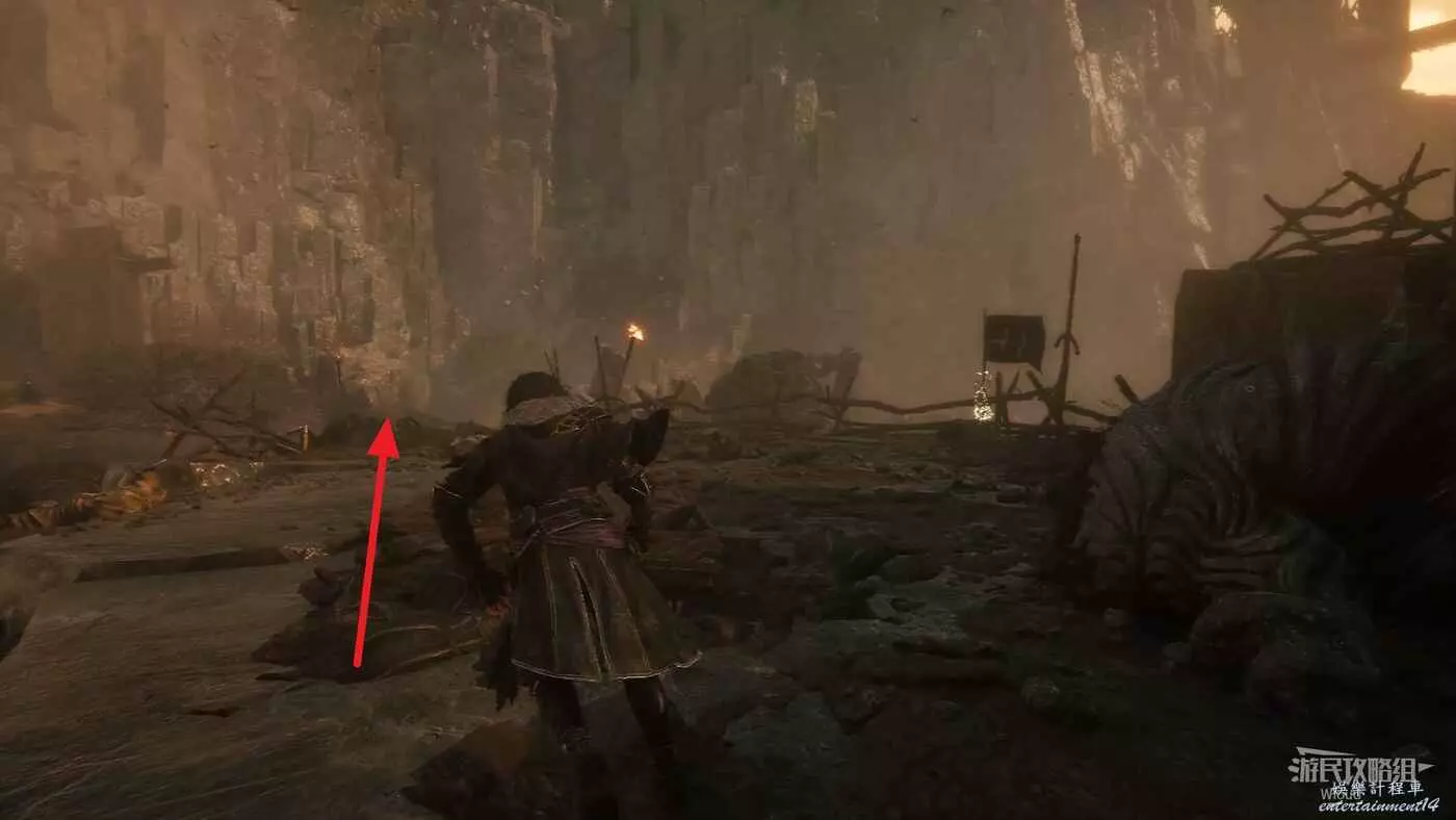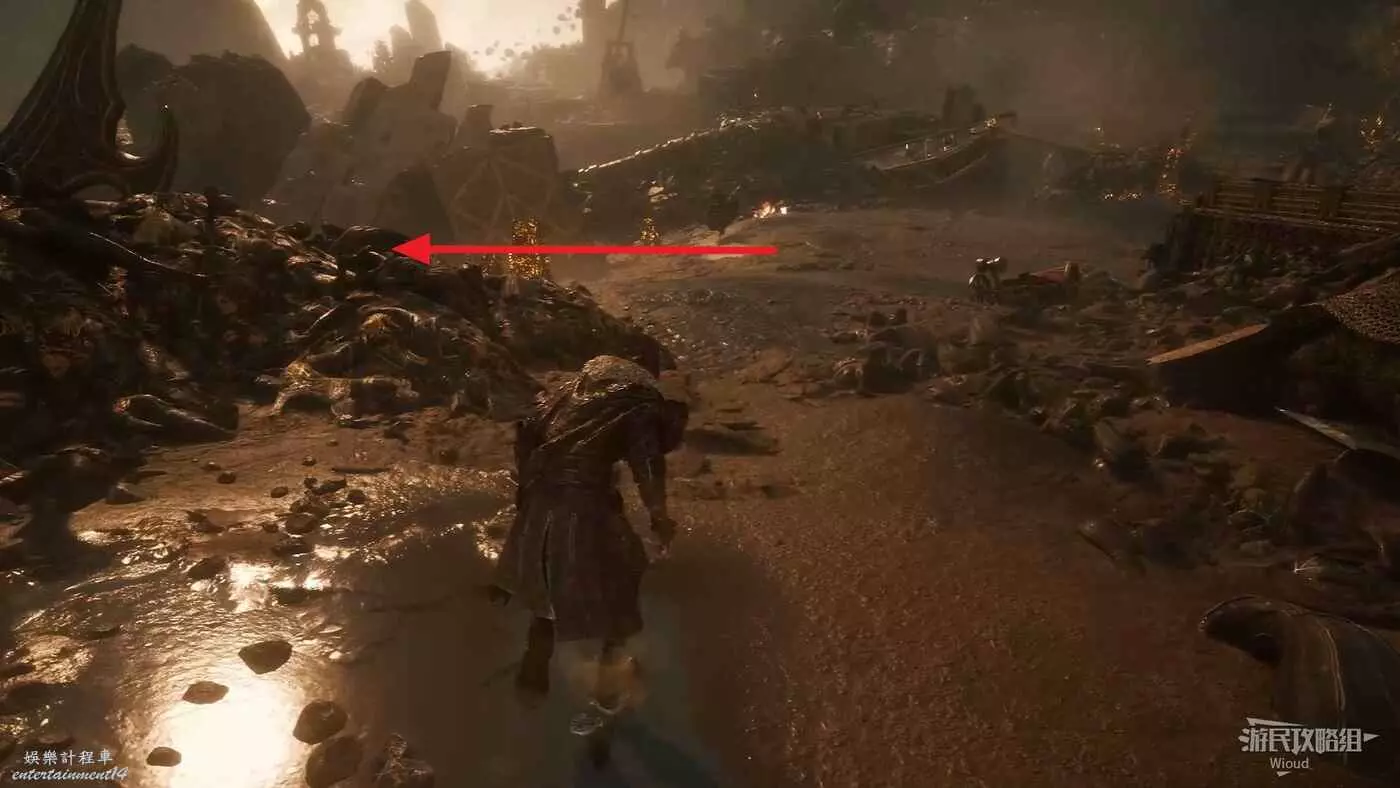 幹掉怪物後,繞到怪物身後大堆殘骸的右側,有條小路。