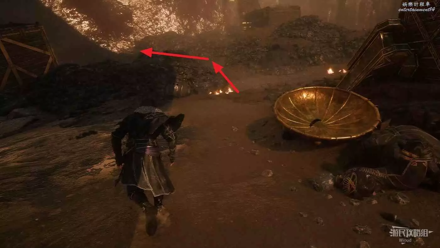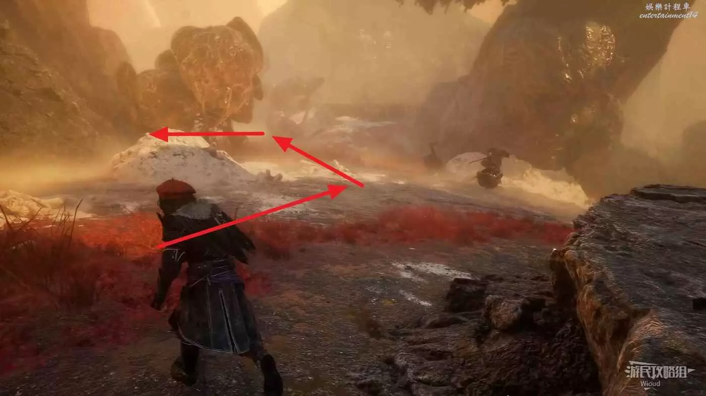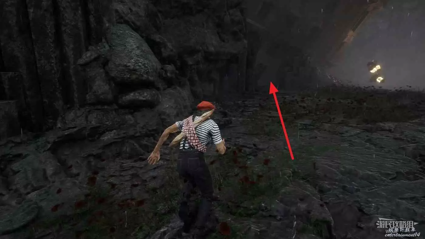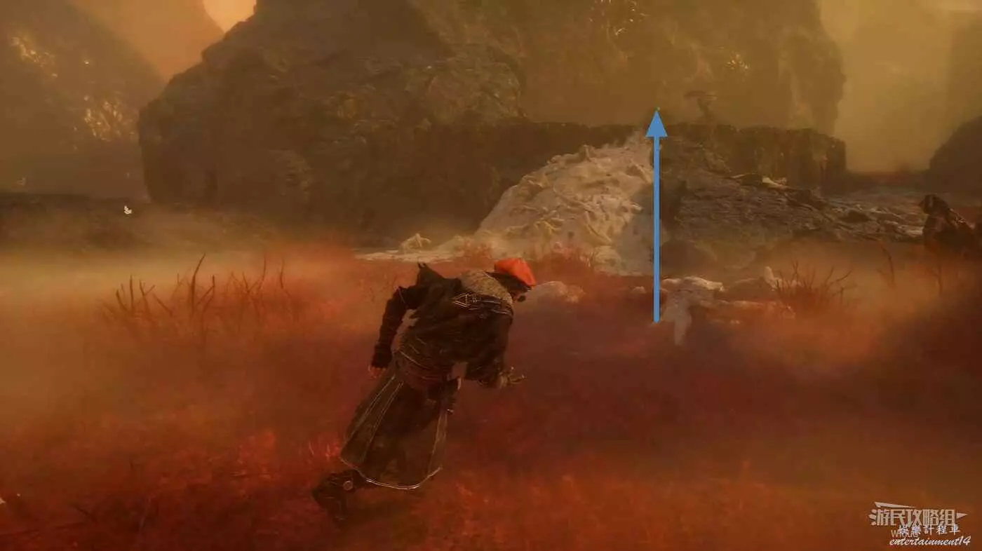 幹掉怪物後,繞到怪物身後大堆殘骸的右側,有條小路。