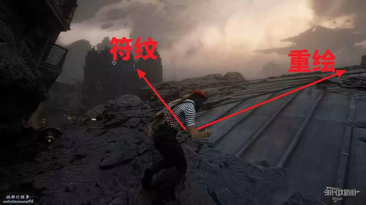 回到建築缺口往左走,前方右側可以拾取個【重繪】,旁邊還有個繩索可解鎖。