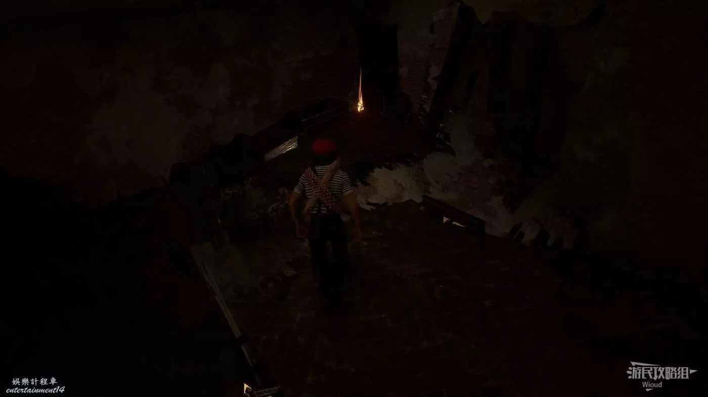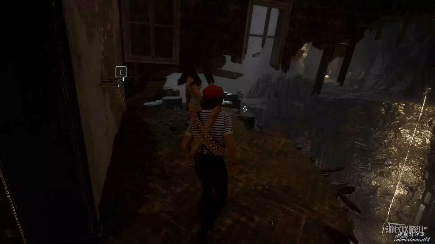 頂層房間通過缺口出去立即右拐,沿著牆上的梯子爬下去可撿到道具【複生亮色碎片】。
