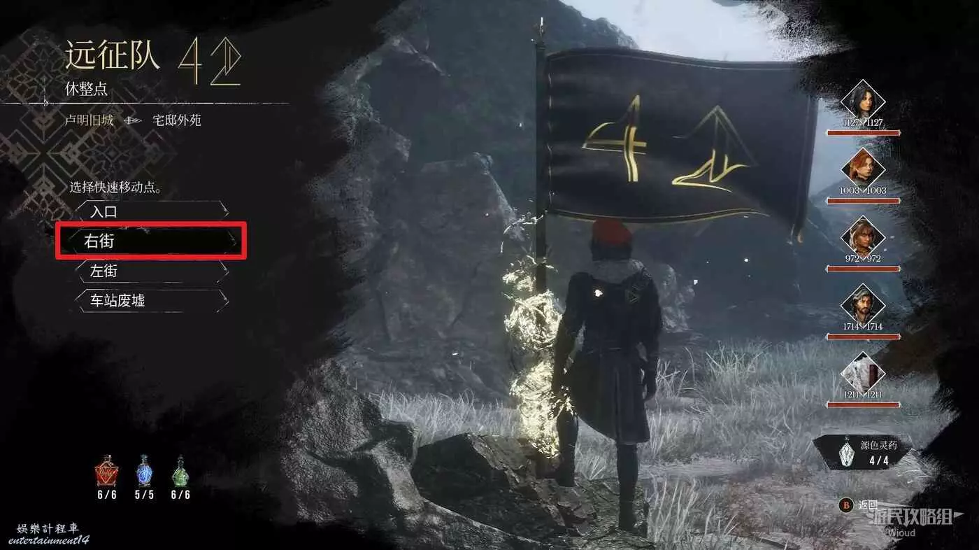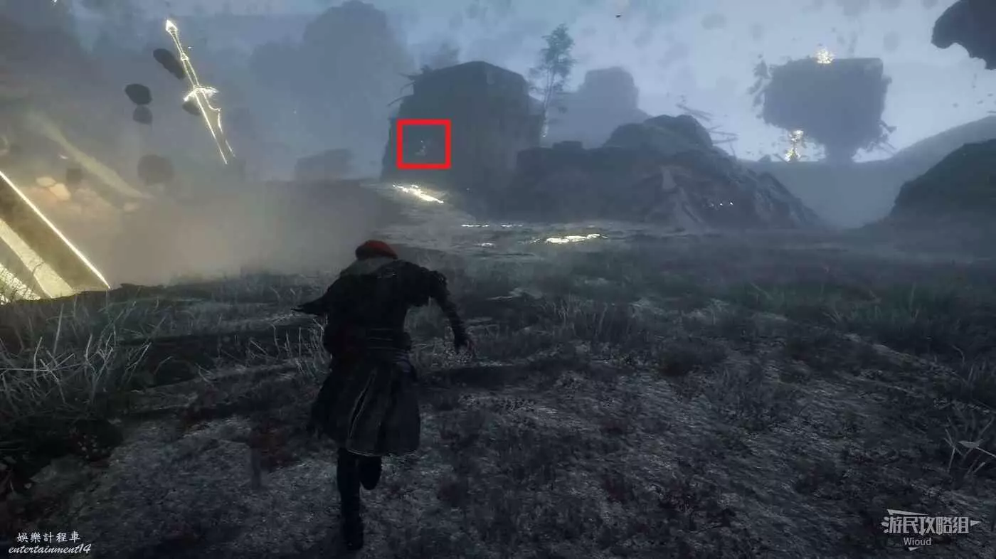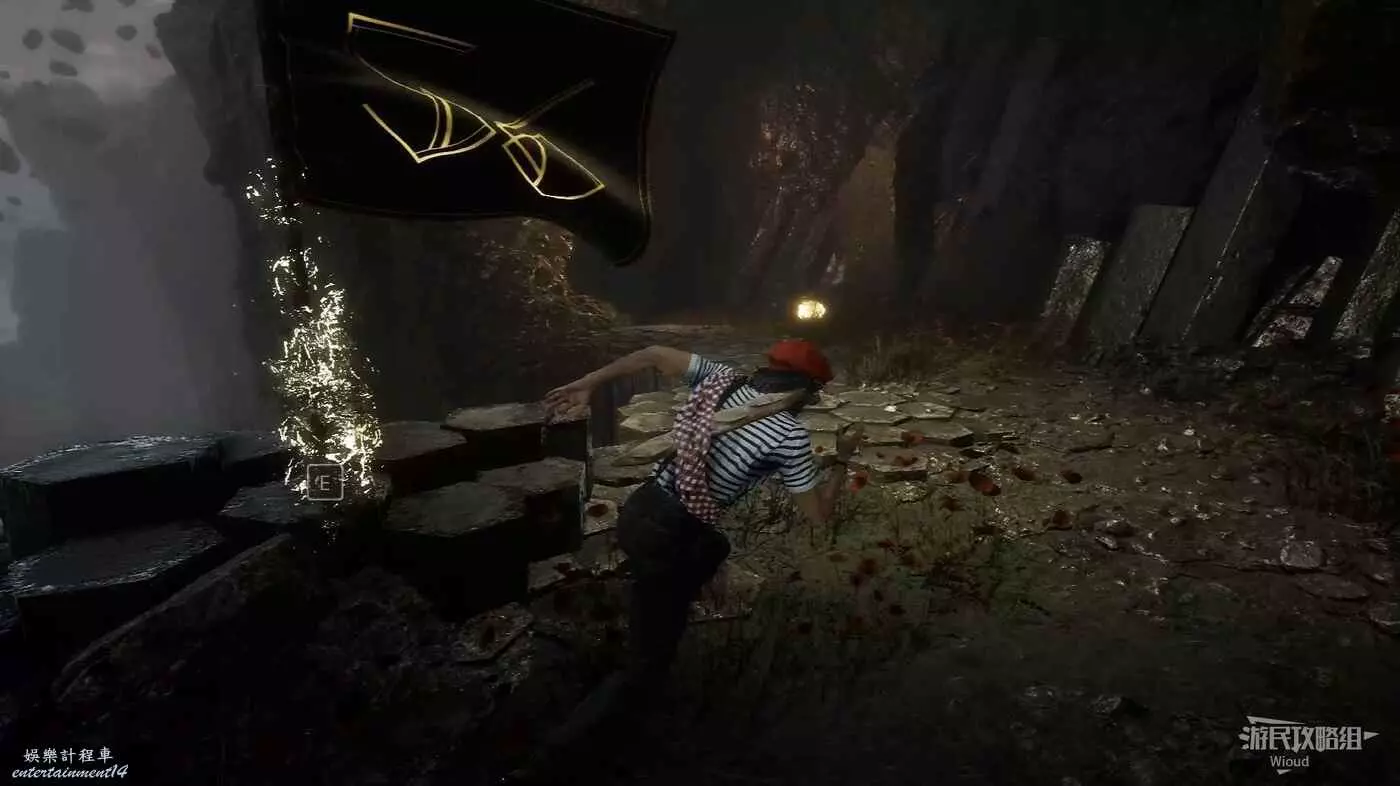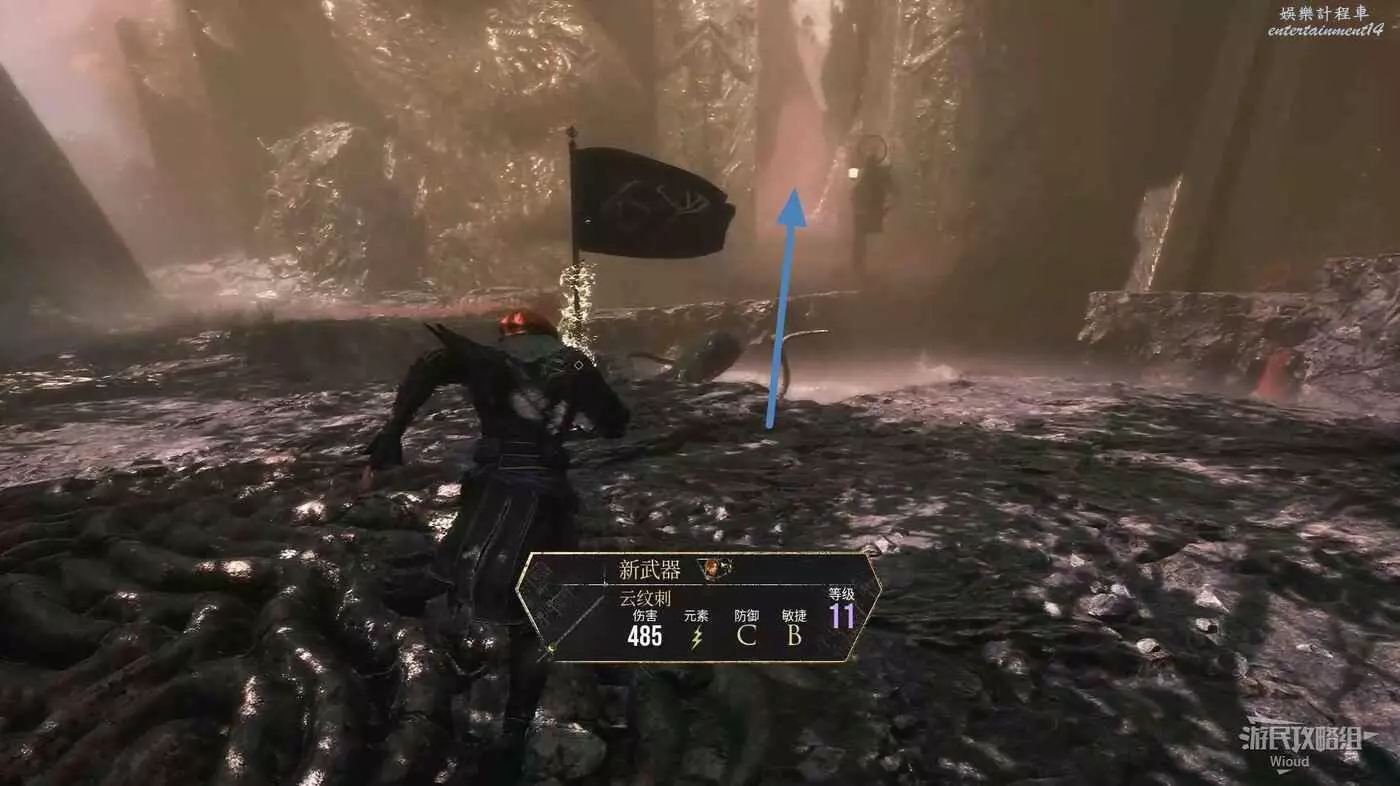 沿路走到一個十字路口,路口中間還有個黑影,此處左拐可啟動旗幟【戰場】。