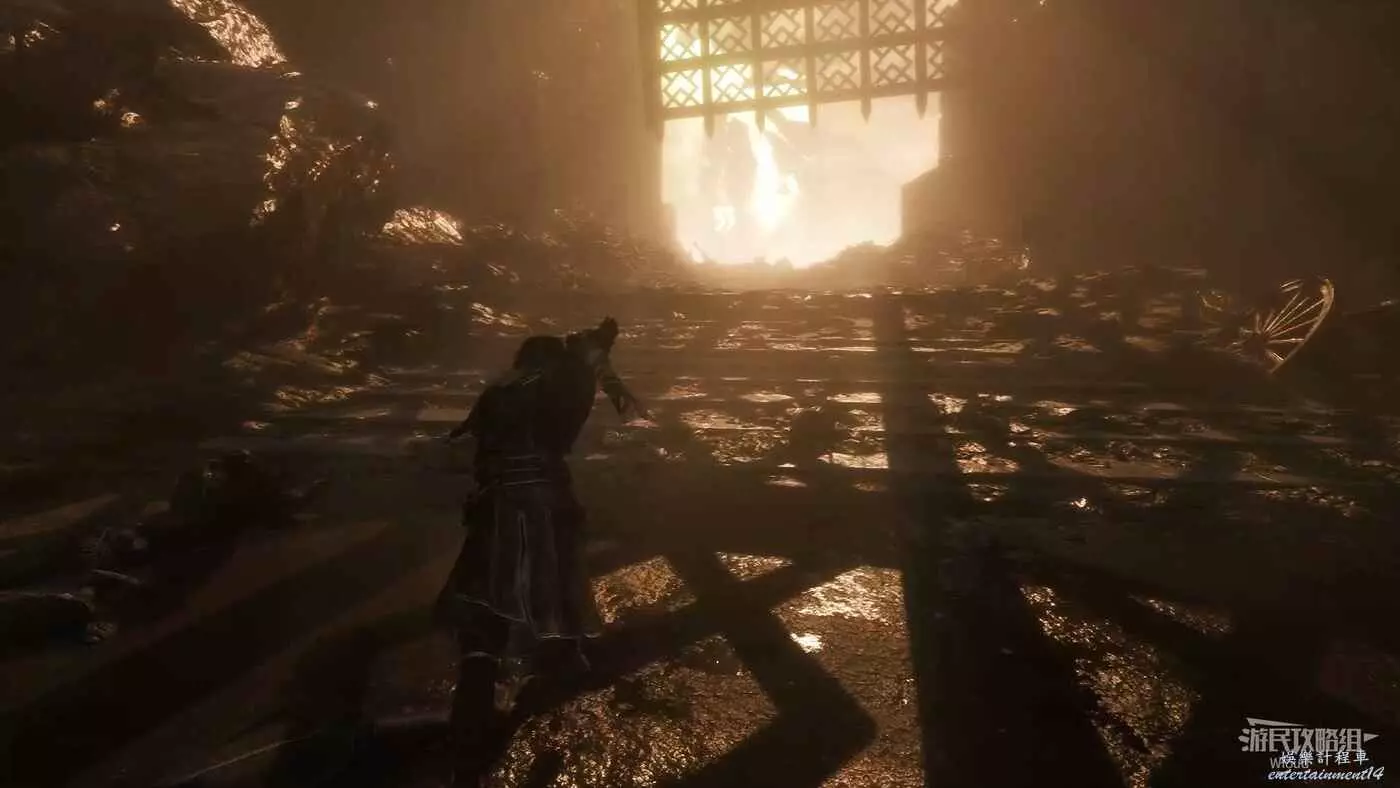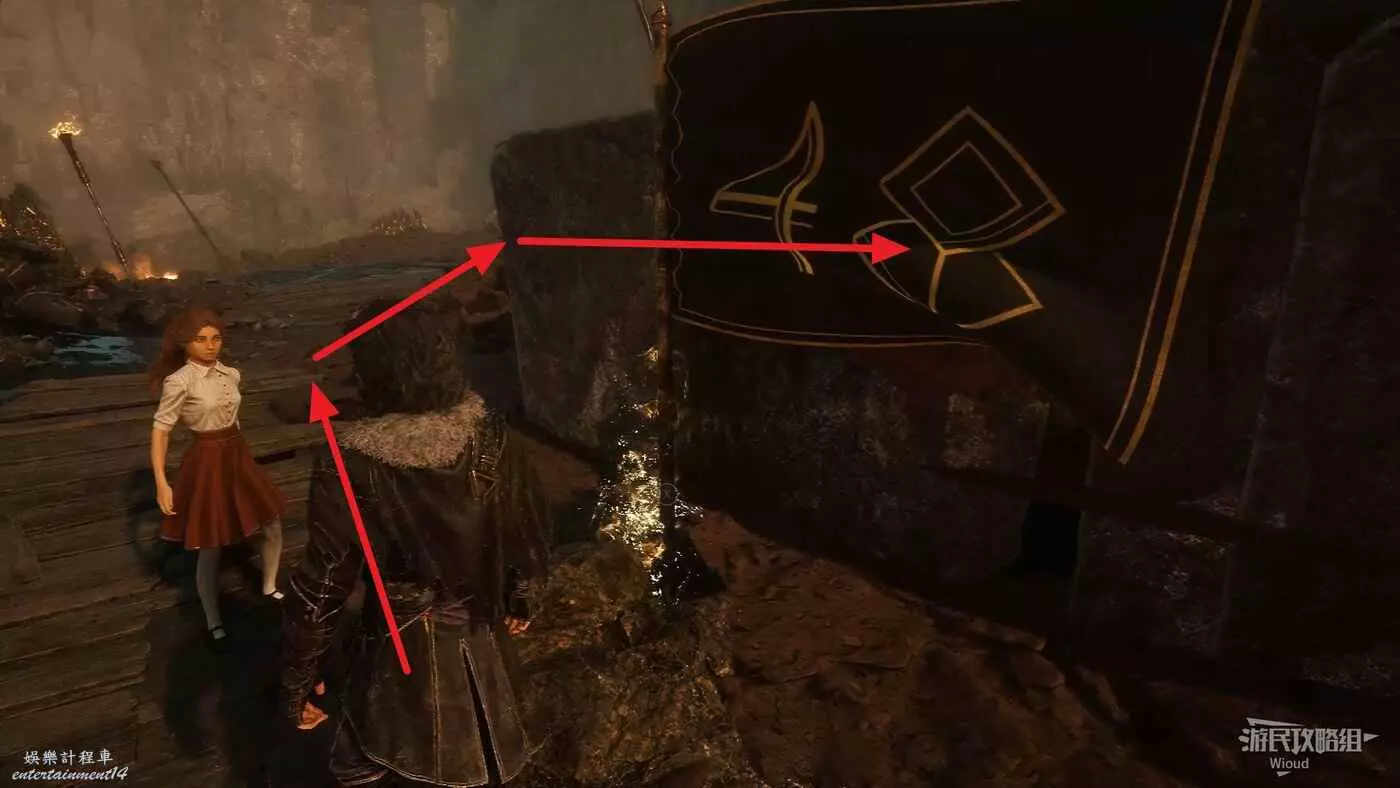 回到開闊區域,穿過左側的拱門啟動旗幟【古橋】,再稍微往前走一段觸發BOSS戰。