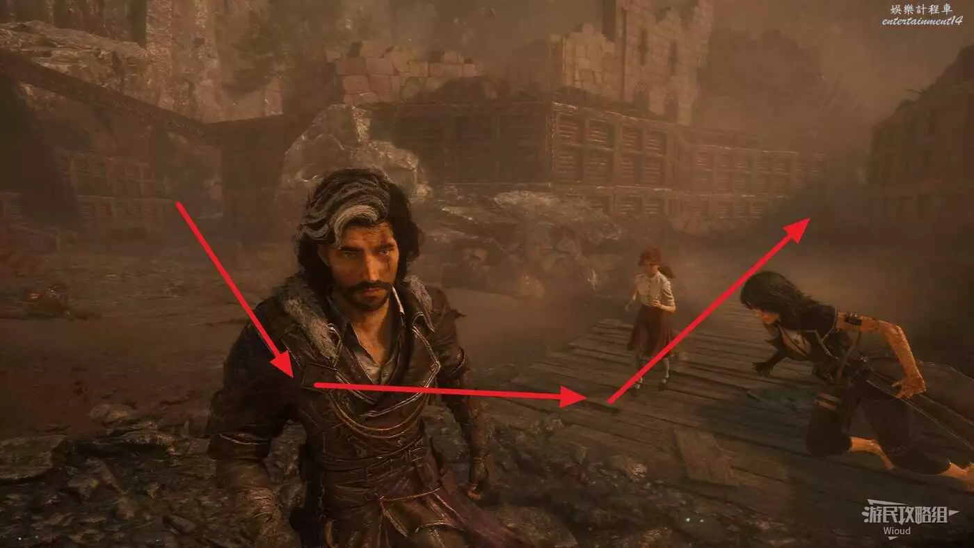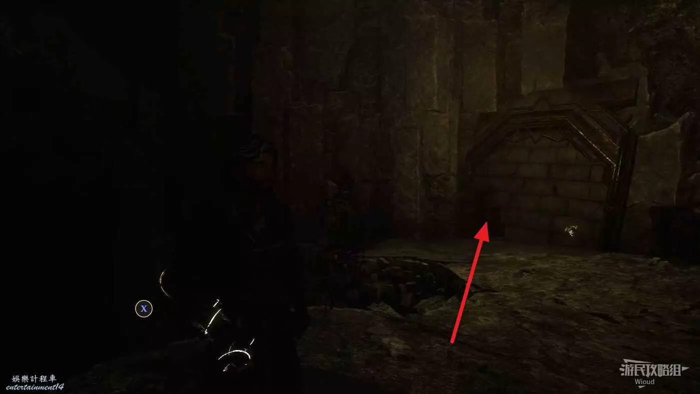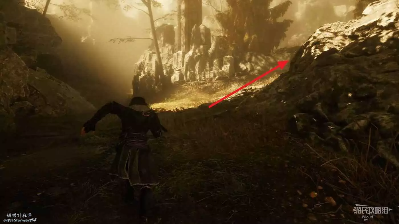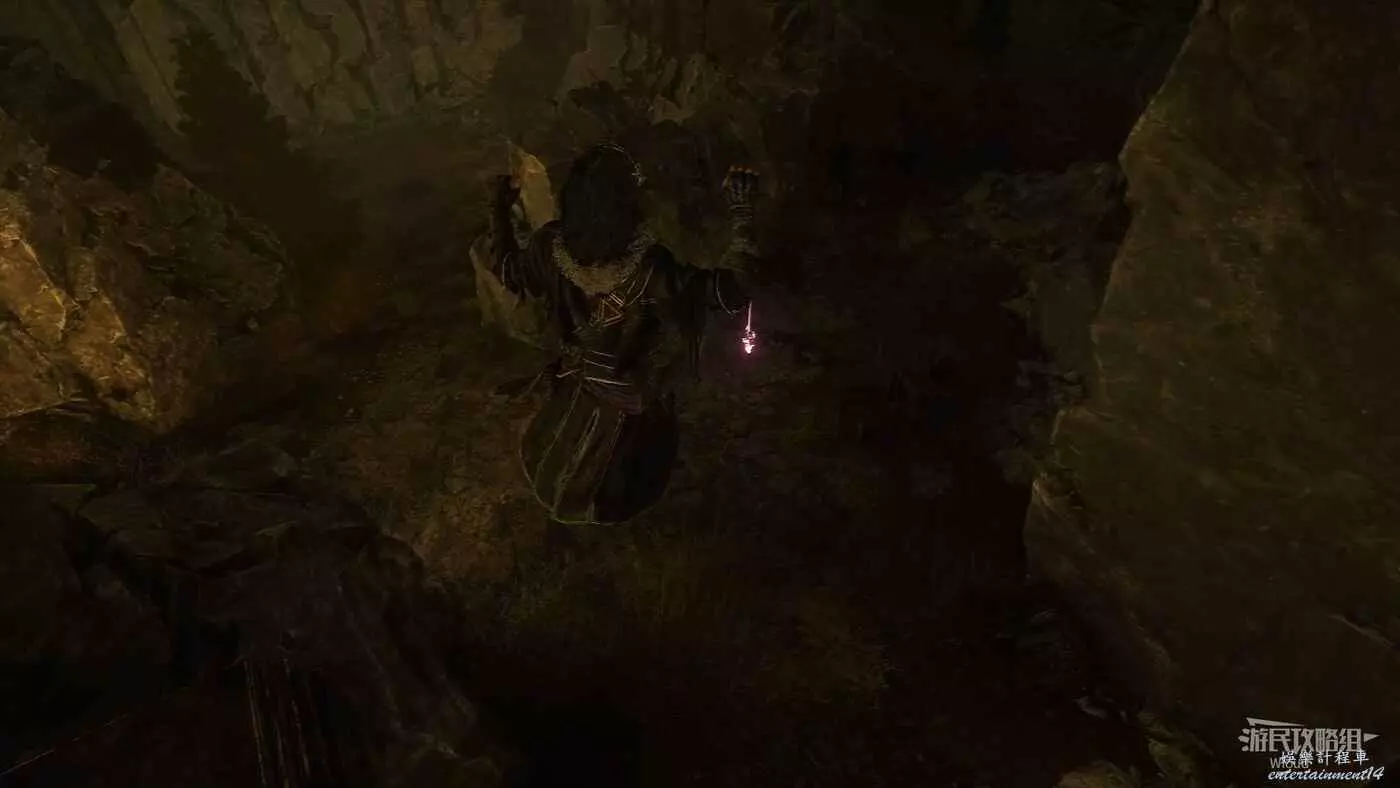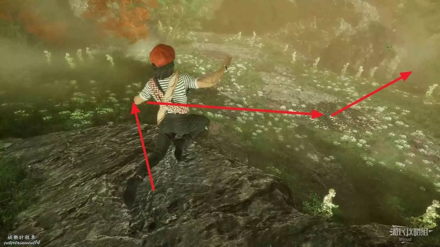 回到之前說的岔路口,通過鉤爪跳到對面平臺,沿路往左走。