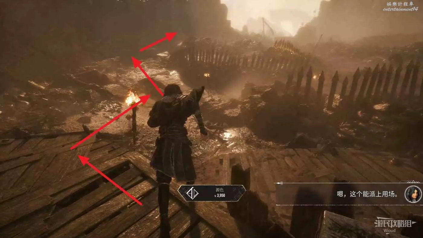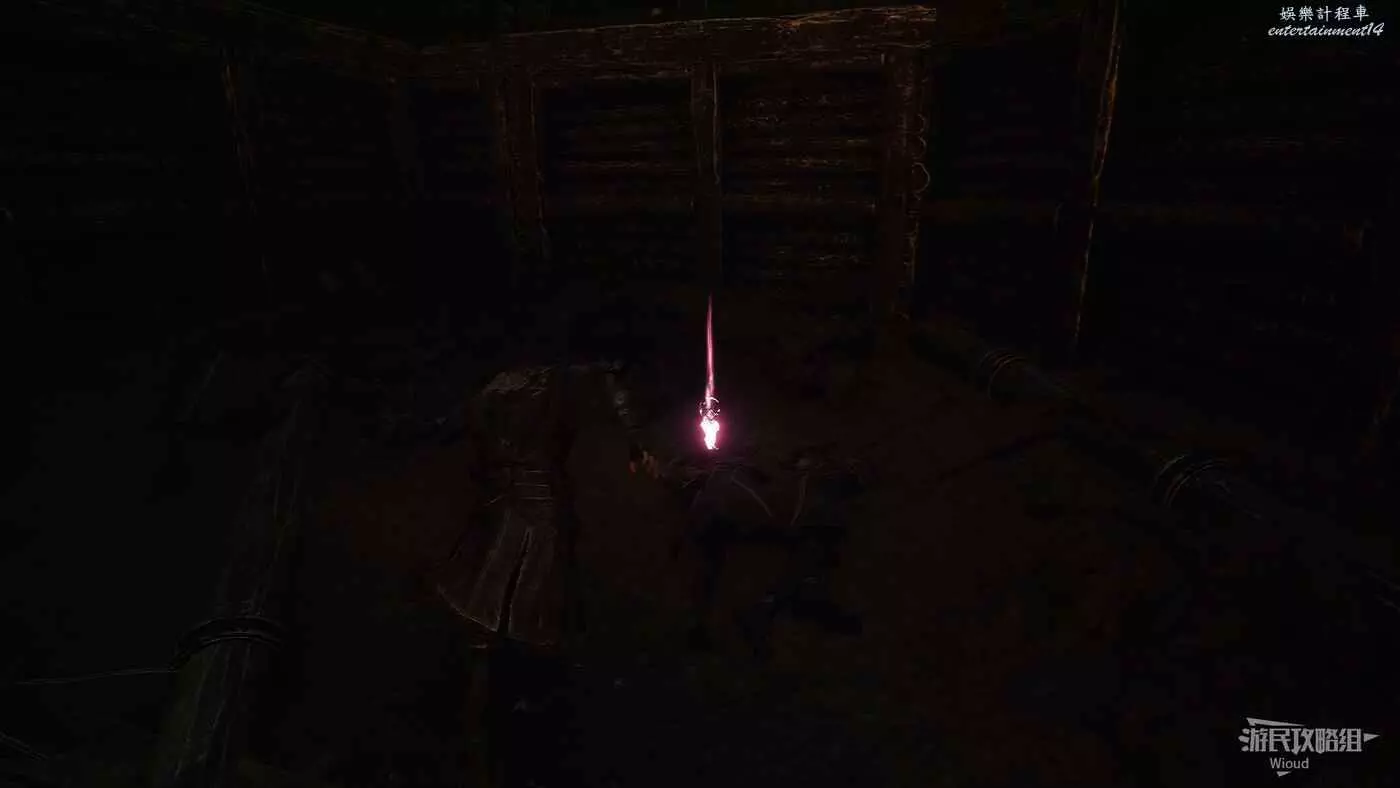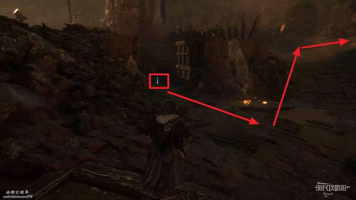 穿過城門,右前方的木頭架子上可以拿到強化道具。
