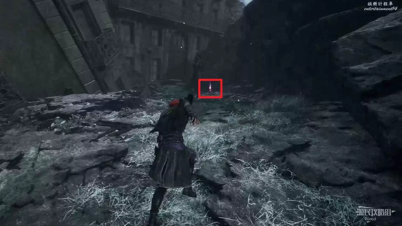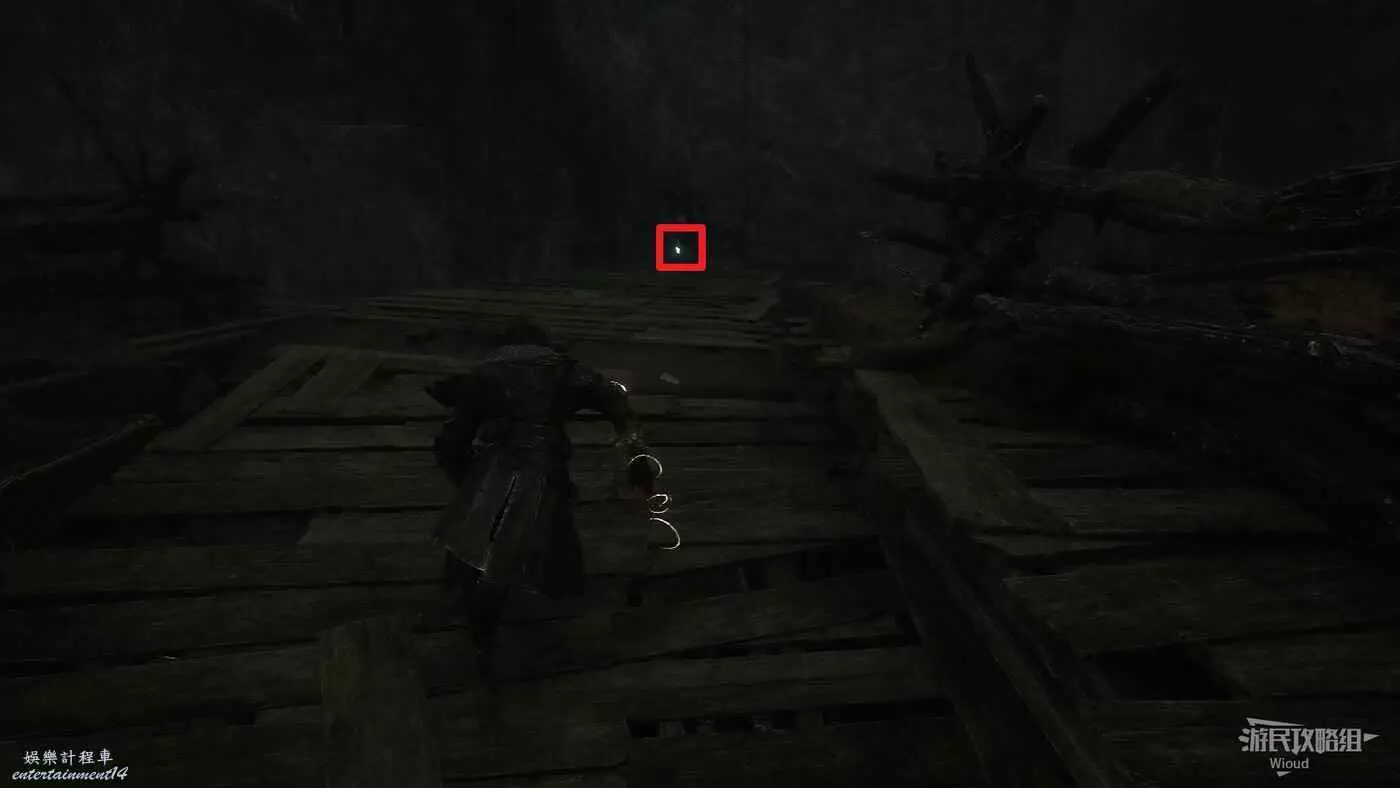 左側通過鉤爪跳過去可撿到符紋【衰弱標記】。