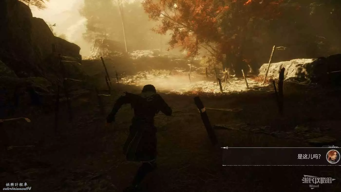 回到主路繼續走,來都一顆大楓樹旁觸發劇情,然後通過出口離開。