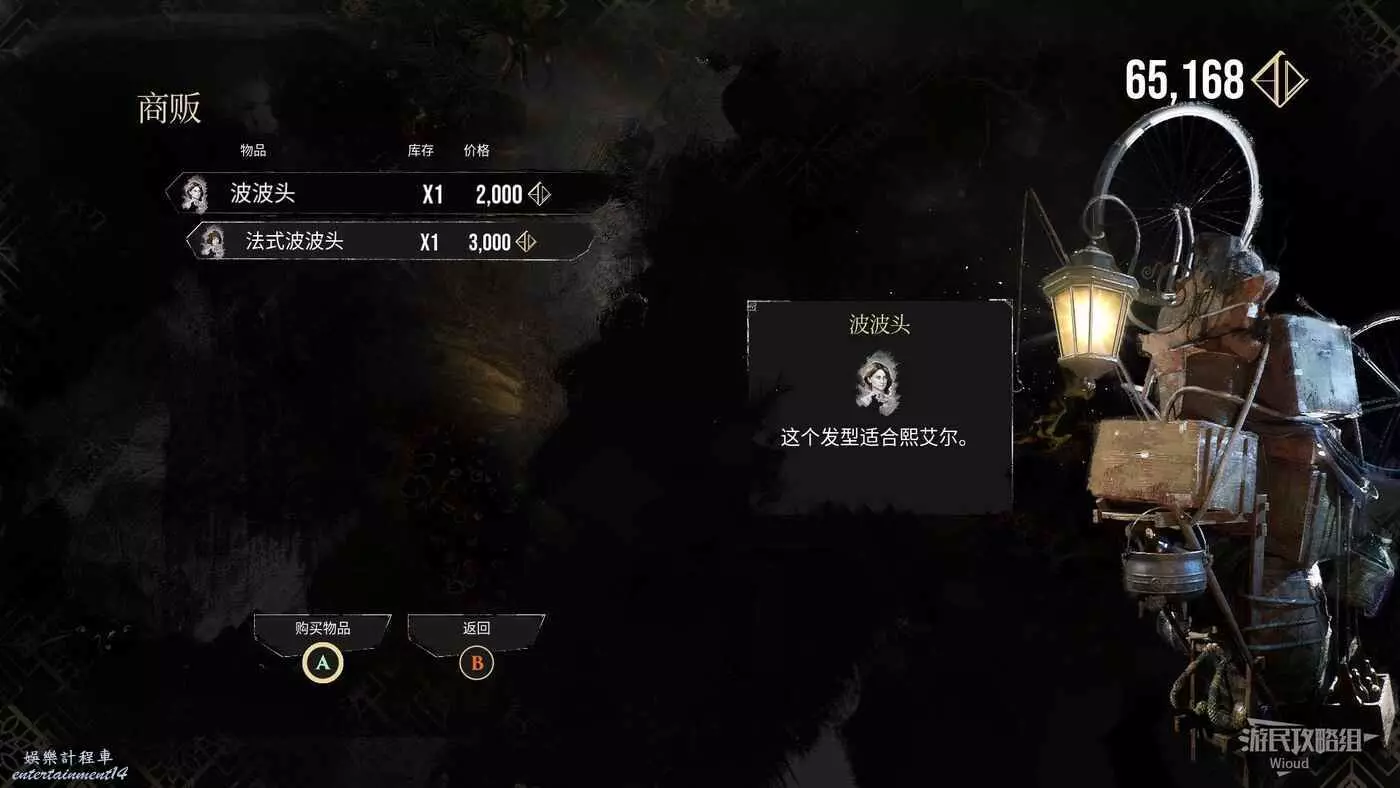 失落的戰場出口處,沿著下圖箭頭往左走,紅框所示位置可以找到一個外觀商人,能買兩個新的髮型裝束。