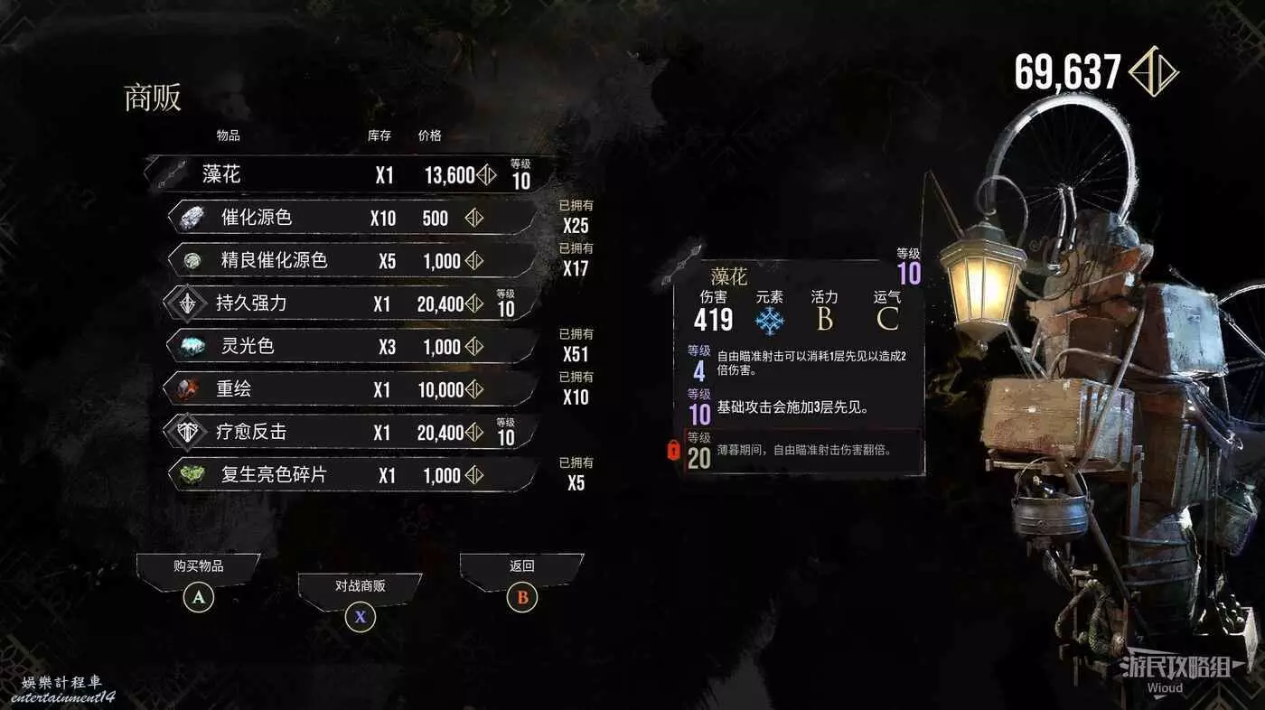 商人位置可購買武器【藻花】、符紋【療愈反擊】。
