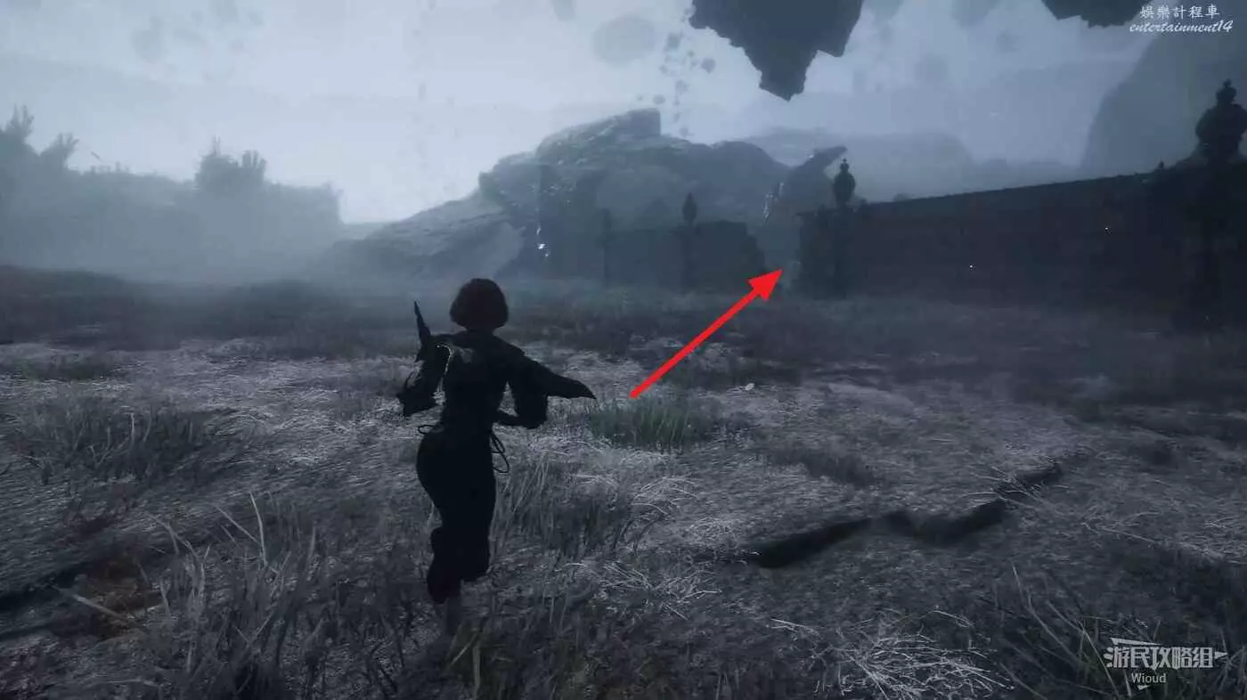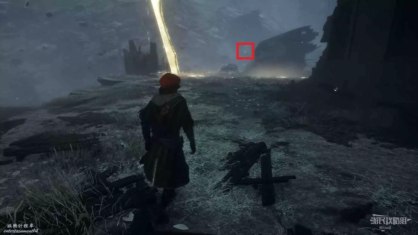 劇情結束時,視角會轉為朝向拱門,此時轉頭往後走,盡頭處可拿到一個【靈光色】。