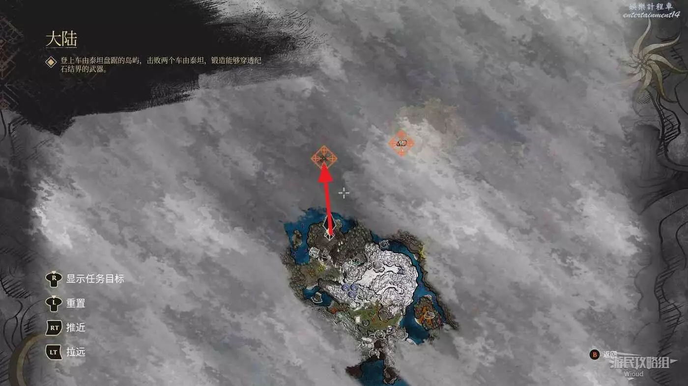 傳送到宅邸區域從出口來到大地圖,走到下圖所示的第一隻車由泰坦【千面】的關卡處。