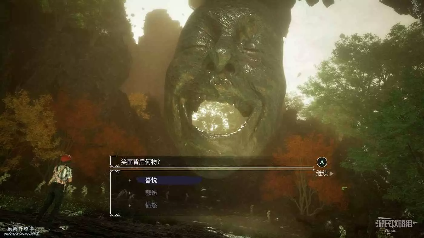 最後沿主路走到頭,面具會問我們一個問題,這裡選擇【笑容】,隨即觸發一場戰鬥。