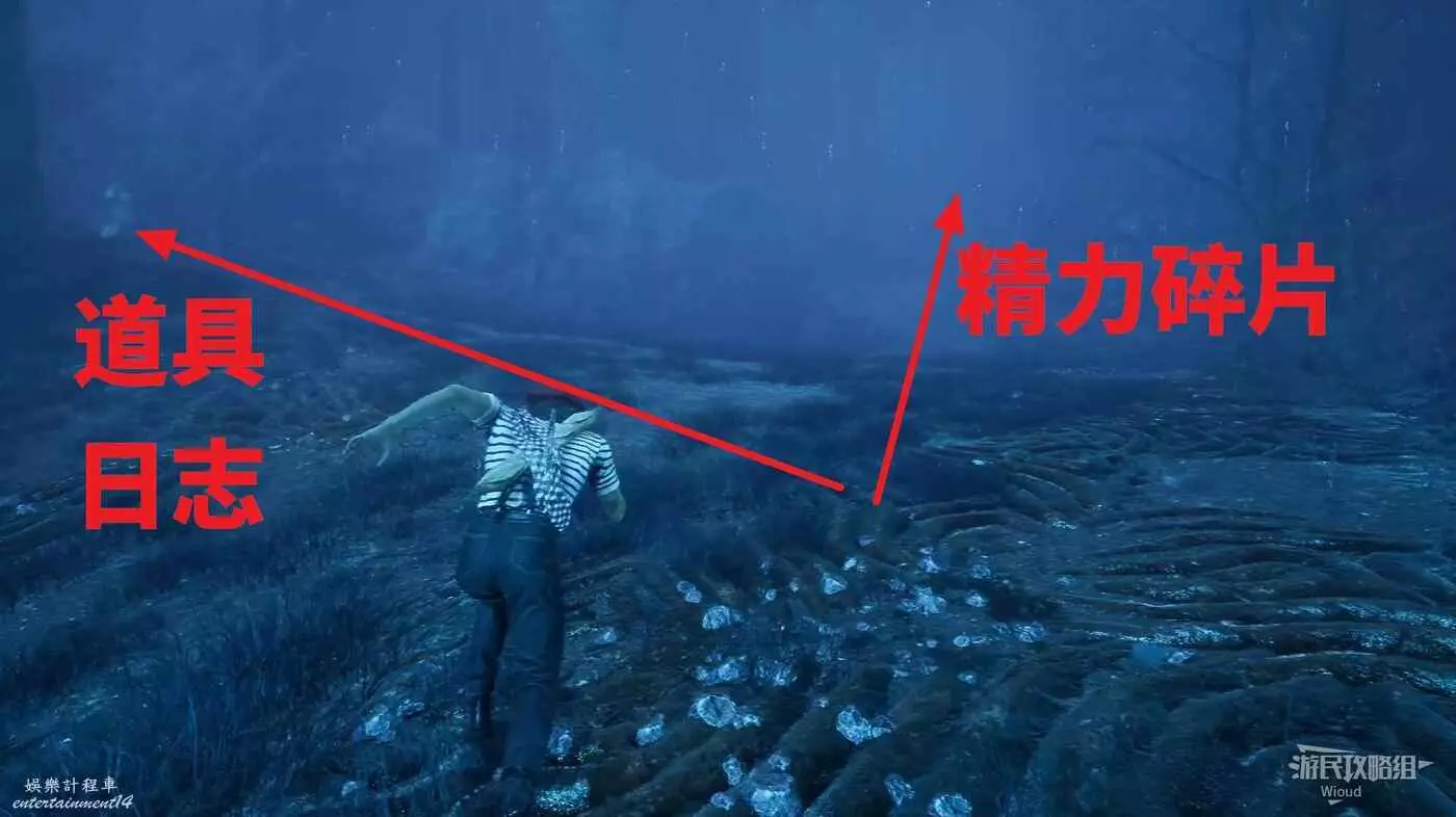日誌位置跟著箭頭直走跳下去,右前方道具點可拿到不少源色。