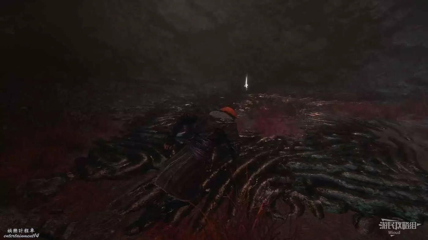 最後沿路一直走到盡頭的隱藏BOSS【源色舞者】處,觸發戰鬥並將其擊敗可獲得符紋【復活悖論】與武器【羽刀】。