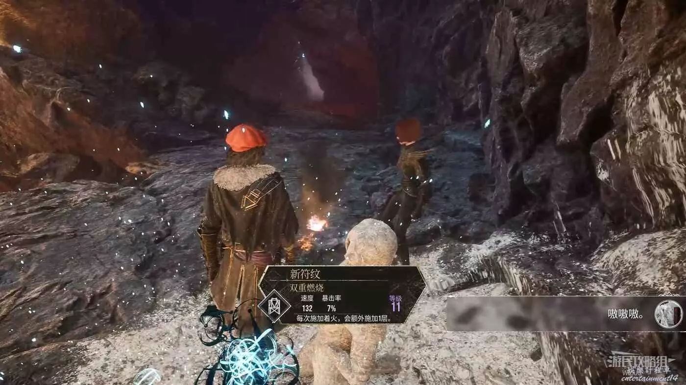 洞口先往左走,擊敗盡頭的敵人拾取藍色道具點可獲得符紋【雙重燃燒】。