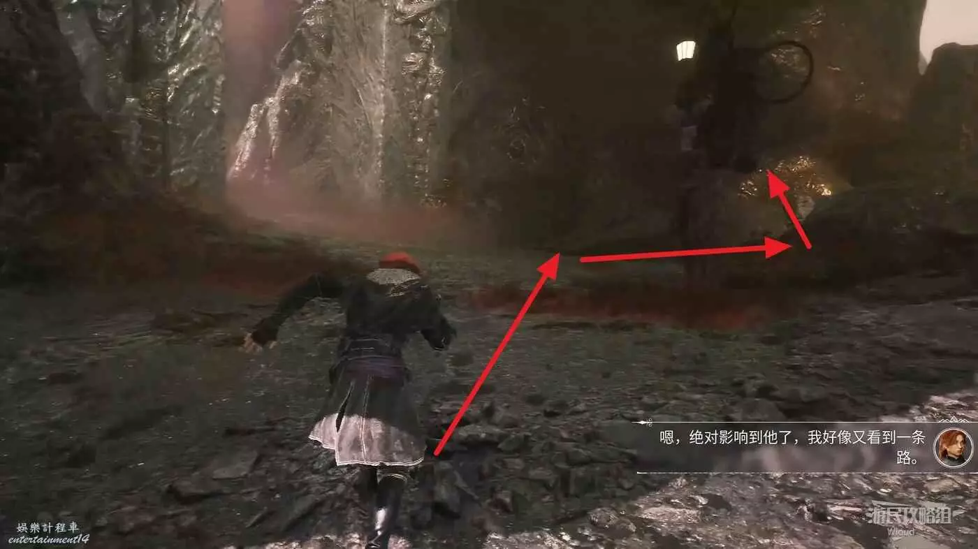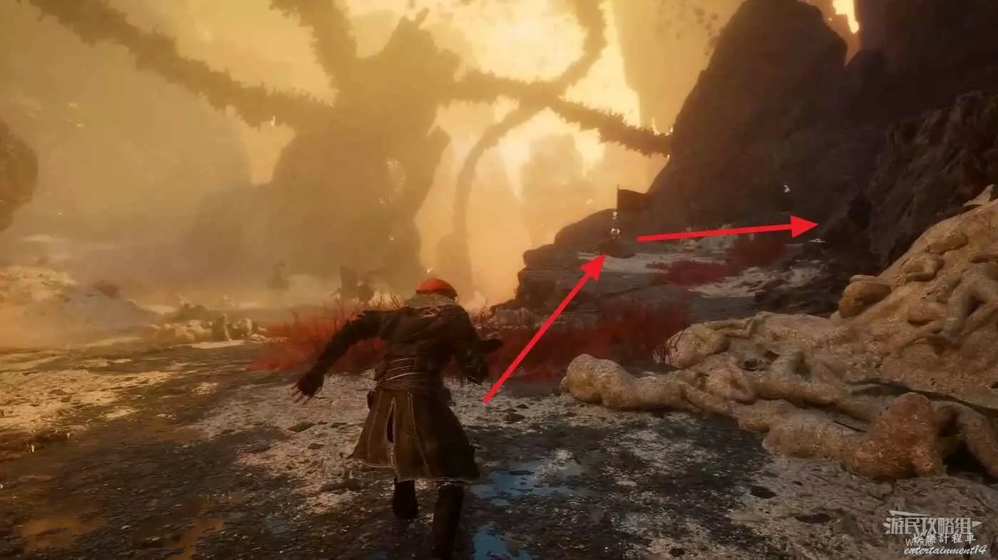光與影 33 號遠征隊 加強攻擊獲取方法 3 5 月 2025-05-03 廣告 作者:Wioud 來源:遊民星空 千面-憤怒谷 回到開闊地走中間開口右側第一個過道。 穿過開頭面具前,沿著下圖箭頭往左後繞一下,有源色可拿。 區域起始點直走到頭,擊敗兩個怪物右拐,啟動右側的旗幟。 旗幟位置往右走,可撿到道具【奪目催化源色】。 前方三個怪物位置往左走,貼著左牆一直往左繞,可撿到一些源色。 轉頭往回走,此時左側有個上坡,爬上去擊敗倆敵人,拾取中間道具點可獲得【複生亮聲碎片】。 原地繼續往前走,盡頭左拐爬繩索下去,撿到符紋【加強攻擊】。
