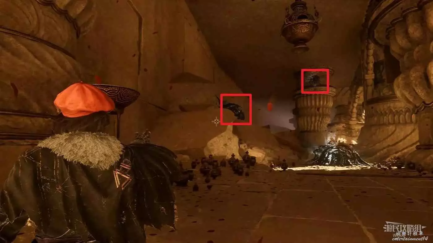 回到繩索點往左走,通過鉤爪移動到對面平台,穿過一段向下的樓梯往左走,可找到一個繪籠。