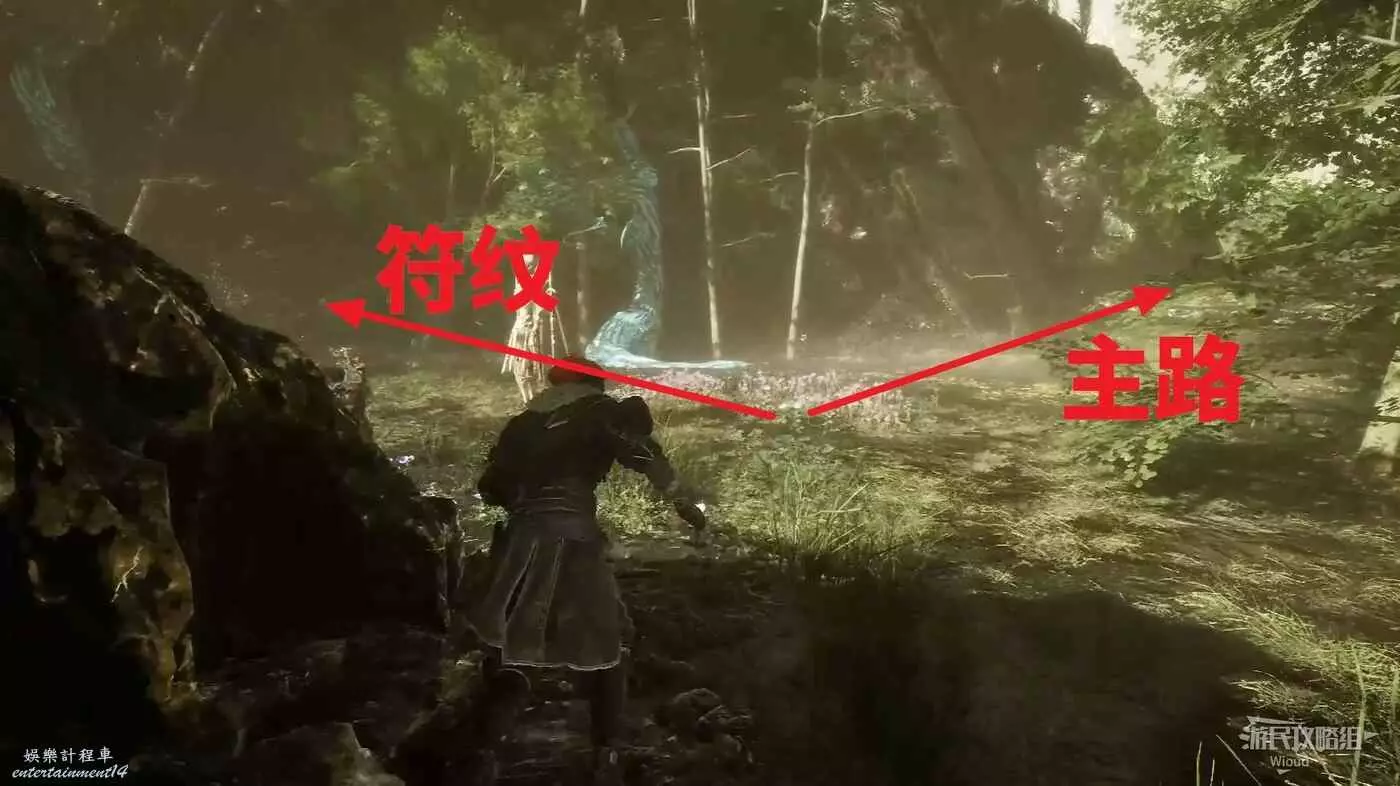遇到一個白色的敵人時,右前方出現一條新路,此路通往下一個區域,先無視沿著目前大路往左繞。