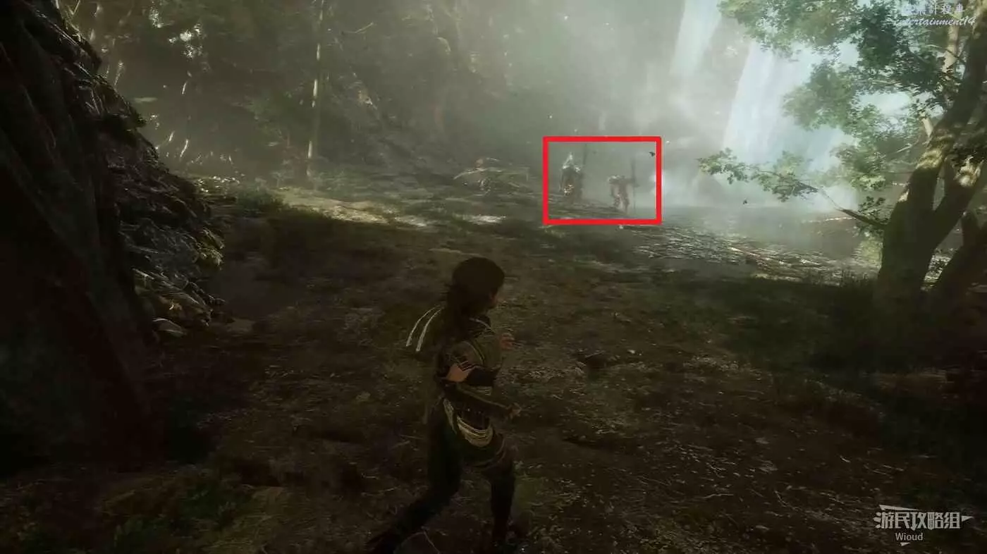 右側擊敗三個敵人可獲得高等級長劍,拾取敵人旁道具點可獲得一個【靈光色】。